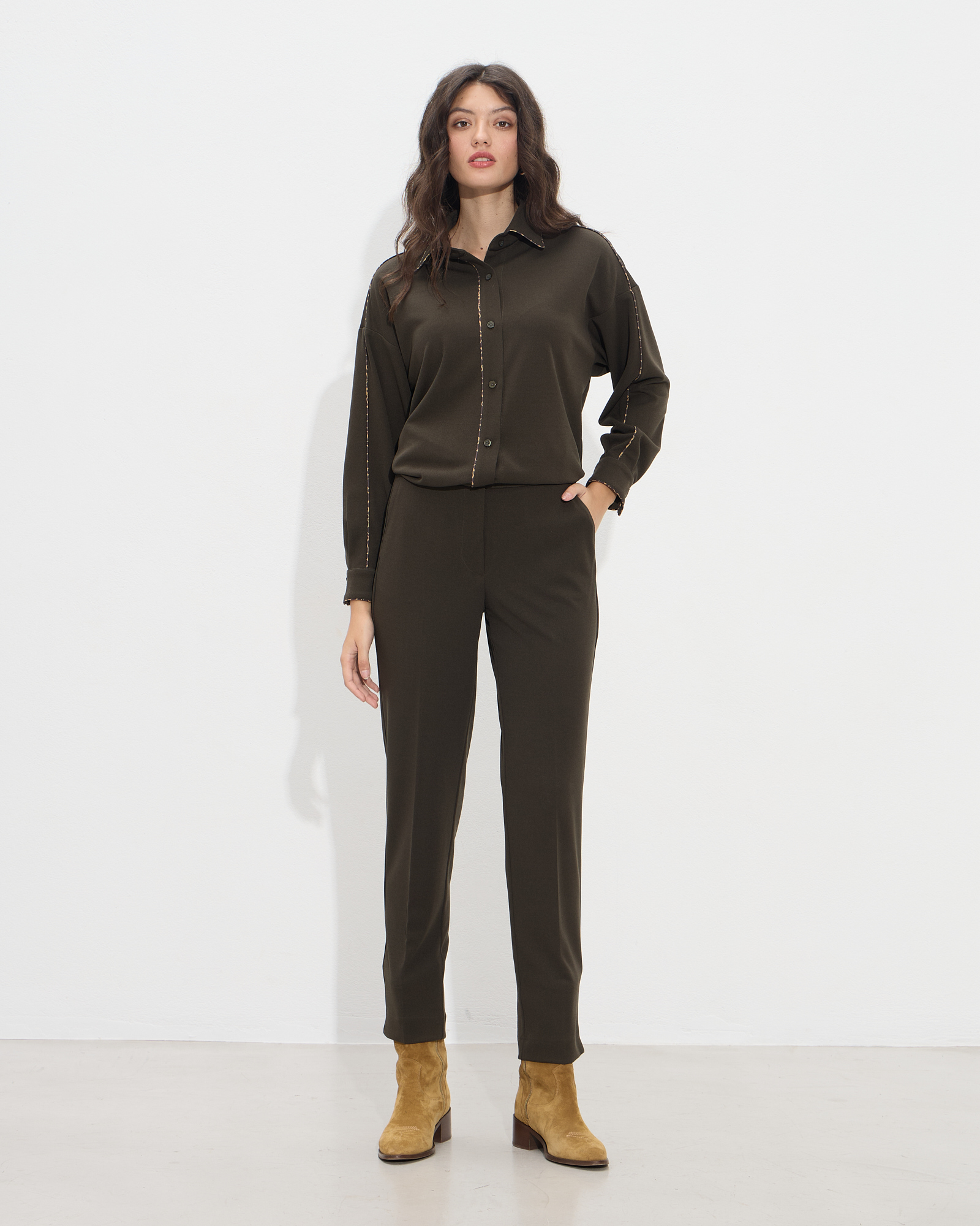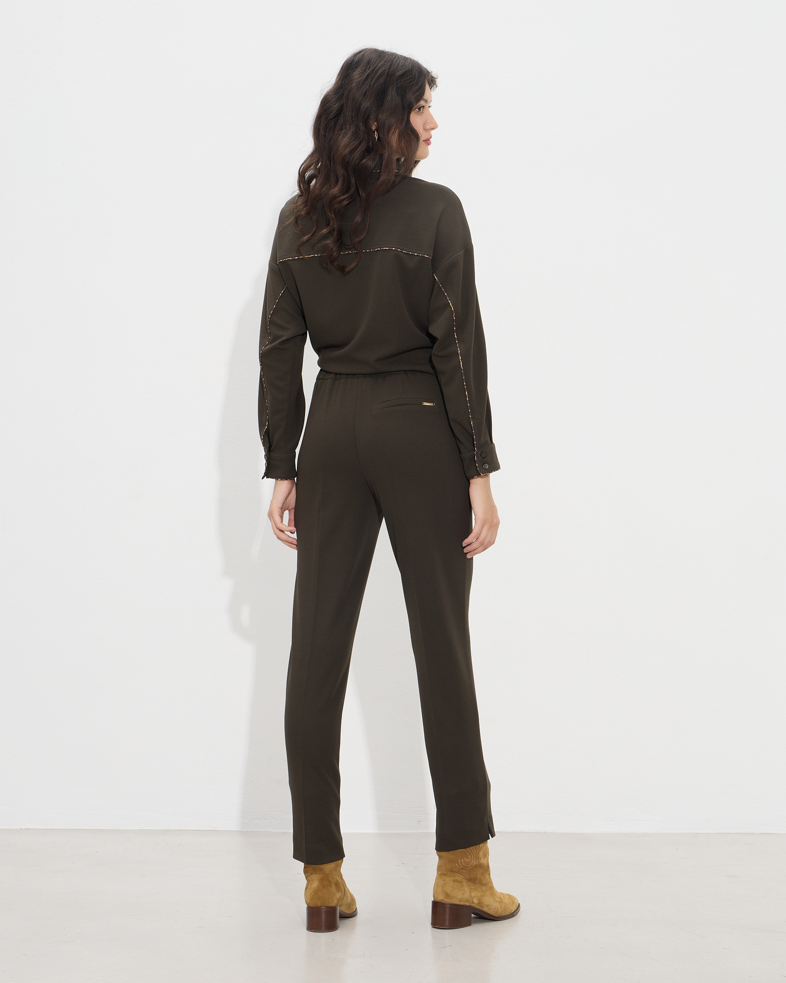 Παντελόνι cigarette ψηλόμεσο με λάστιχο στο πίσω μέρος, κλείσιμο με κουμπί και φερμουάρ μπροστά, πλαϊνές τσέπες, σε ελαστικό πανί, σε κανονική γραμμή