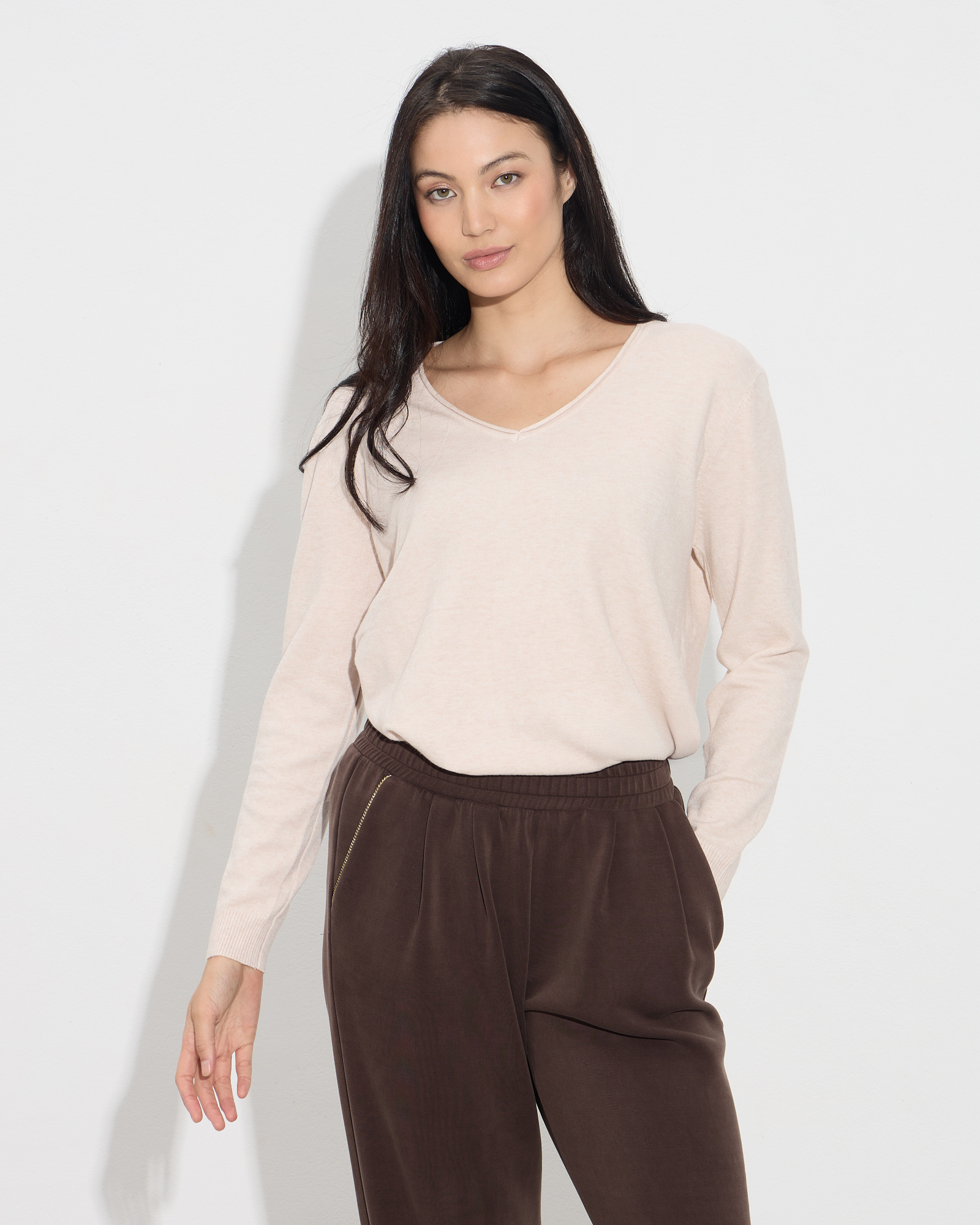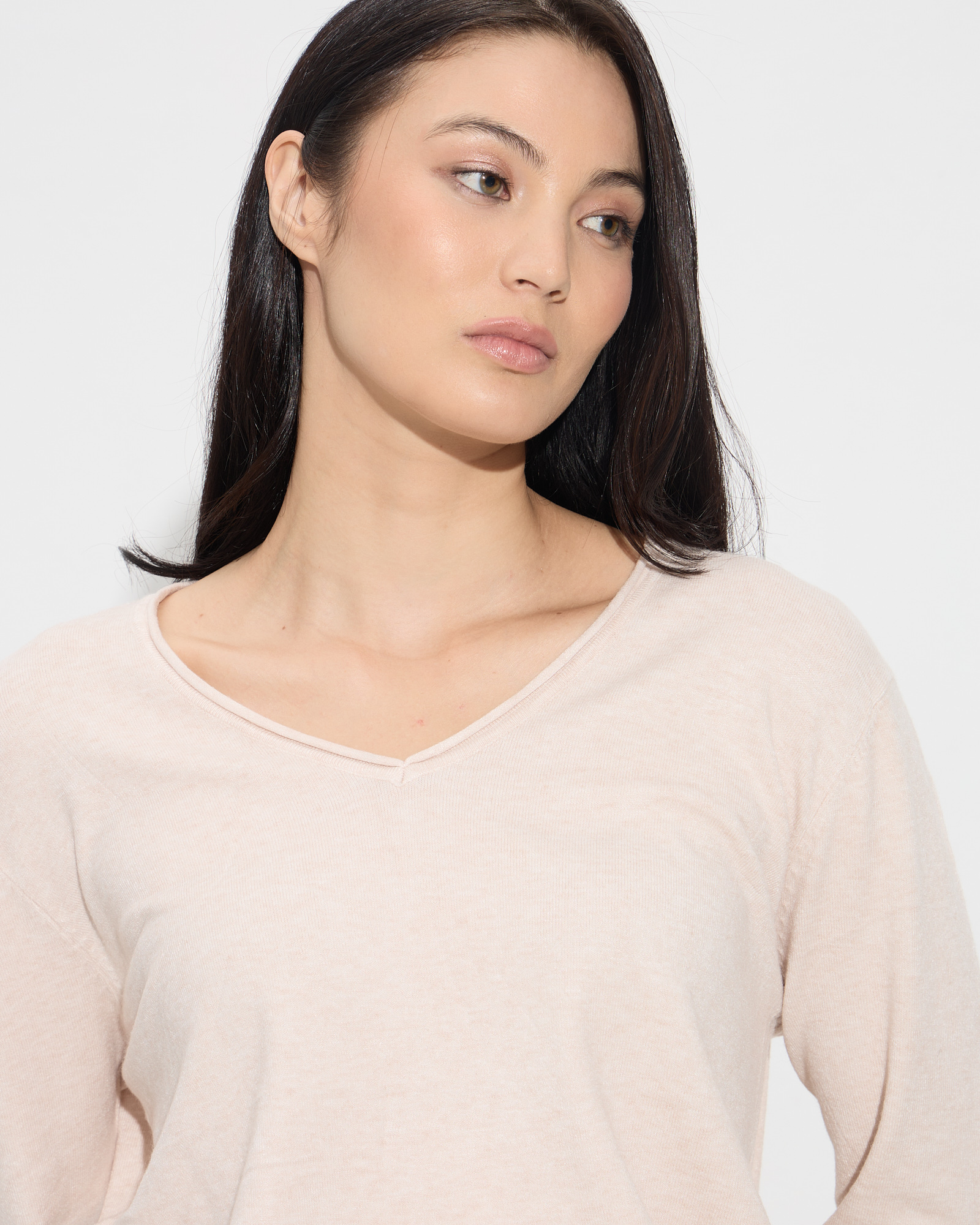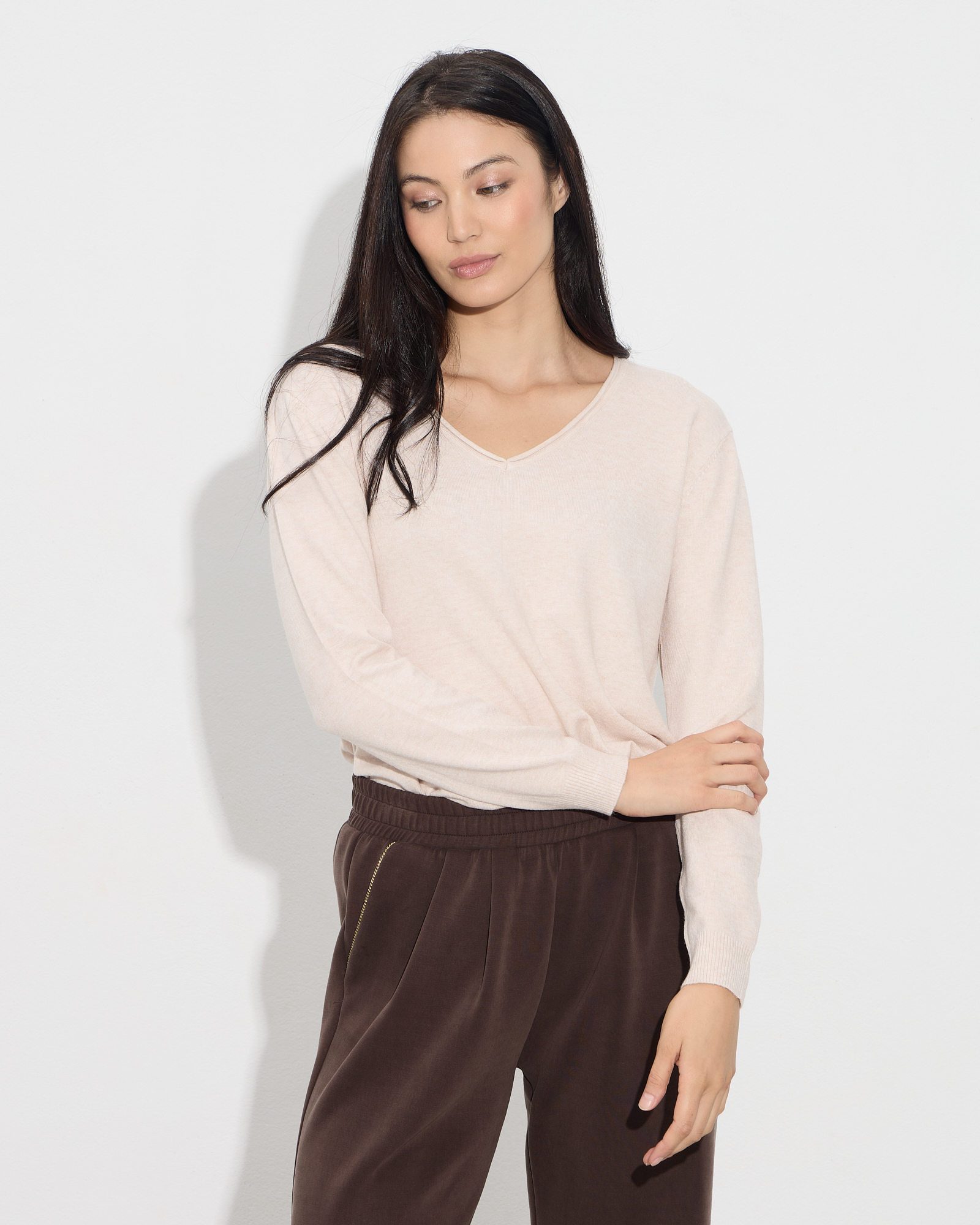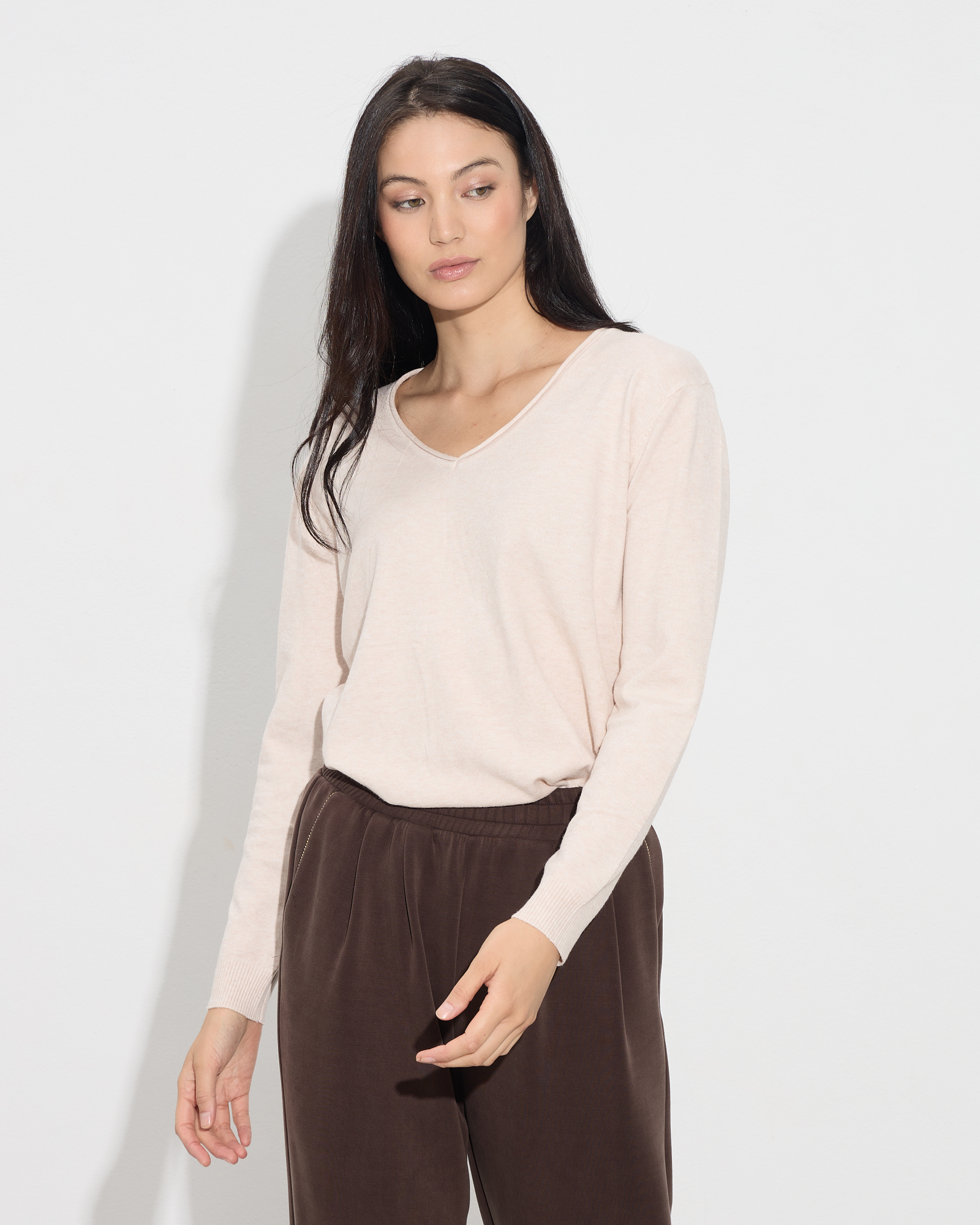 Μπλούζα με μακριά μανίκια, με V λαιμόκοψη, σε άνετη γραμμή