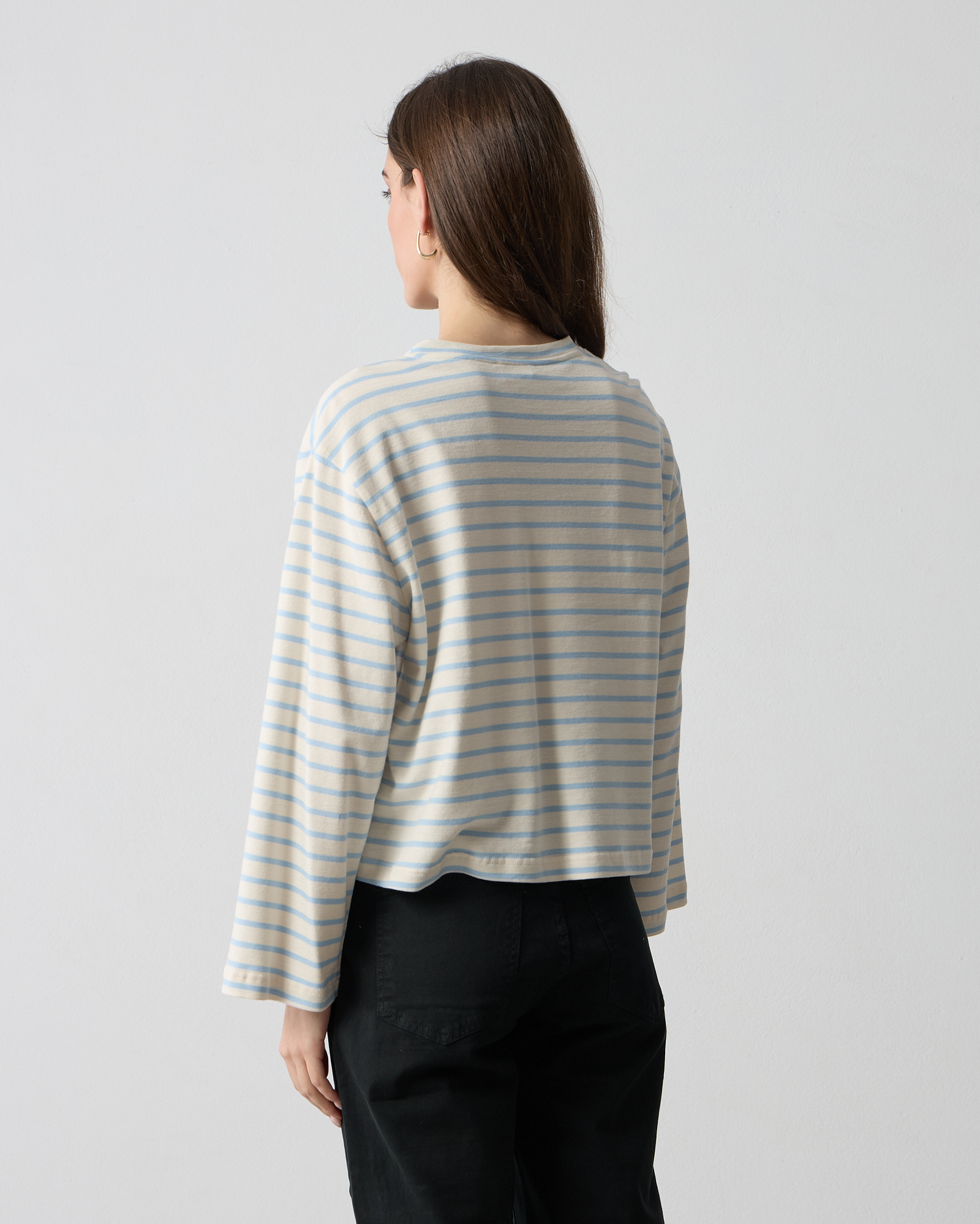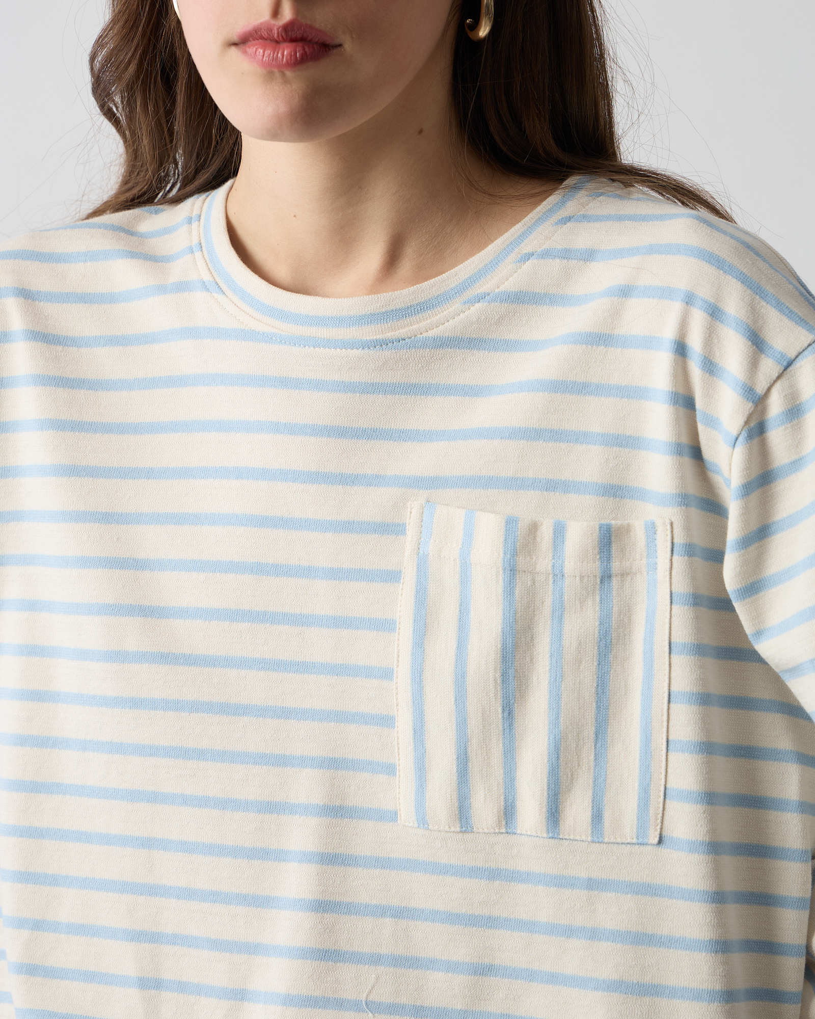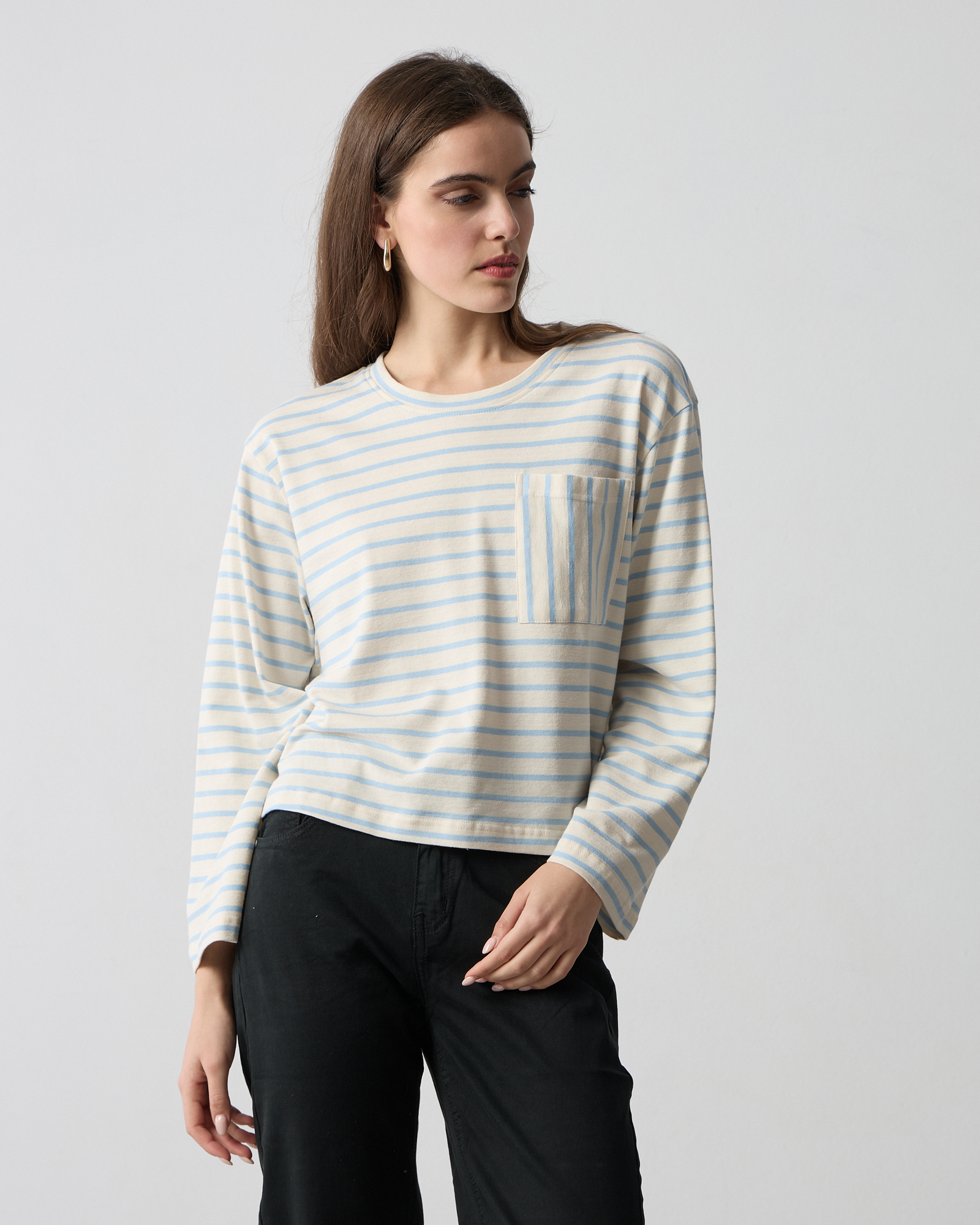 Μπλούζα μακρυμάνικη ριγέ, με στρογγυλή λαιμόκοψη, διακοσμητική τσέπη στο στήθος, βαμβακερή, σε κανονική εφαρμογή