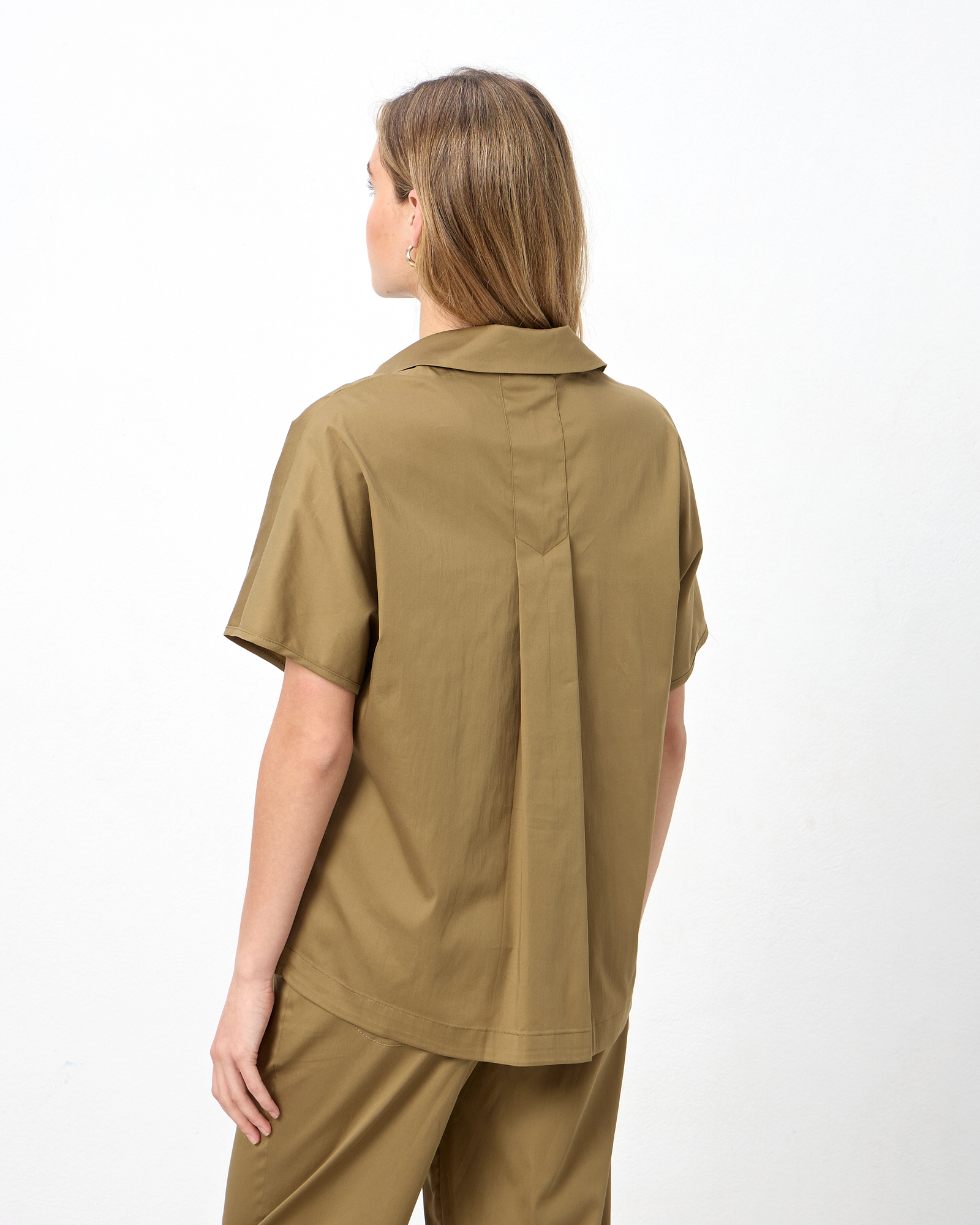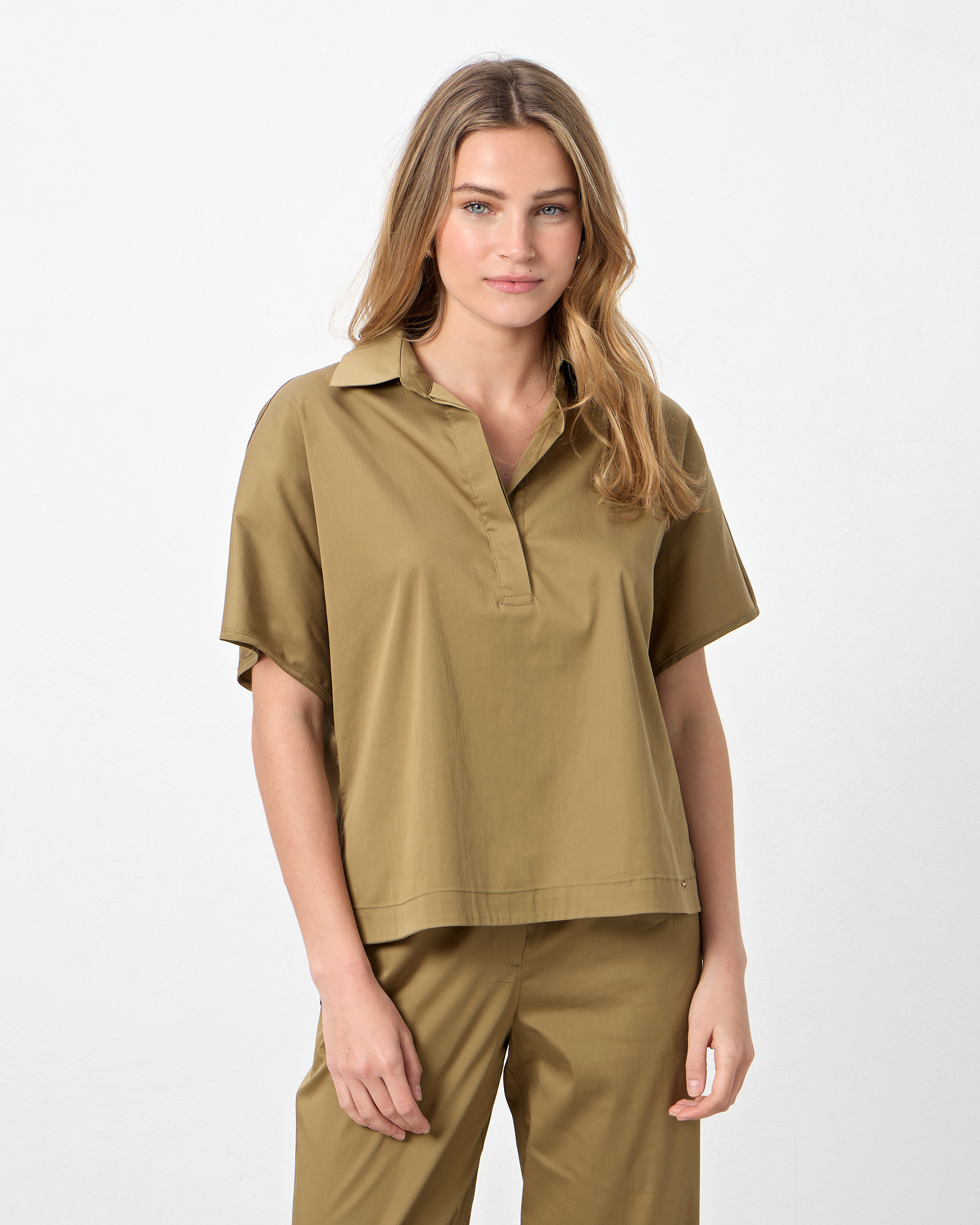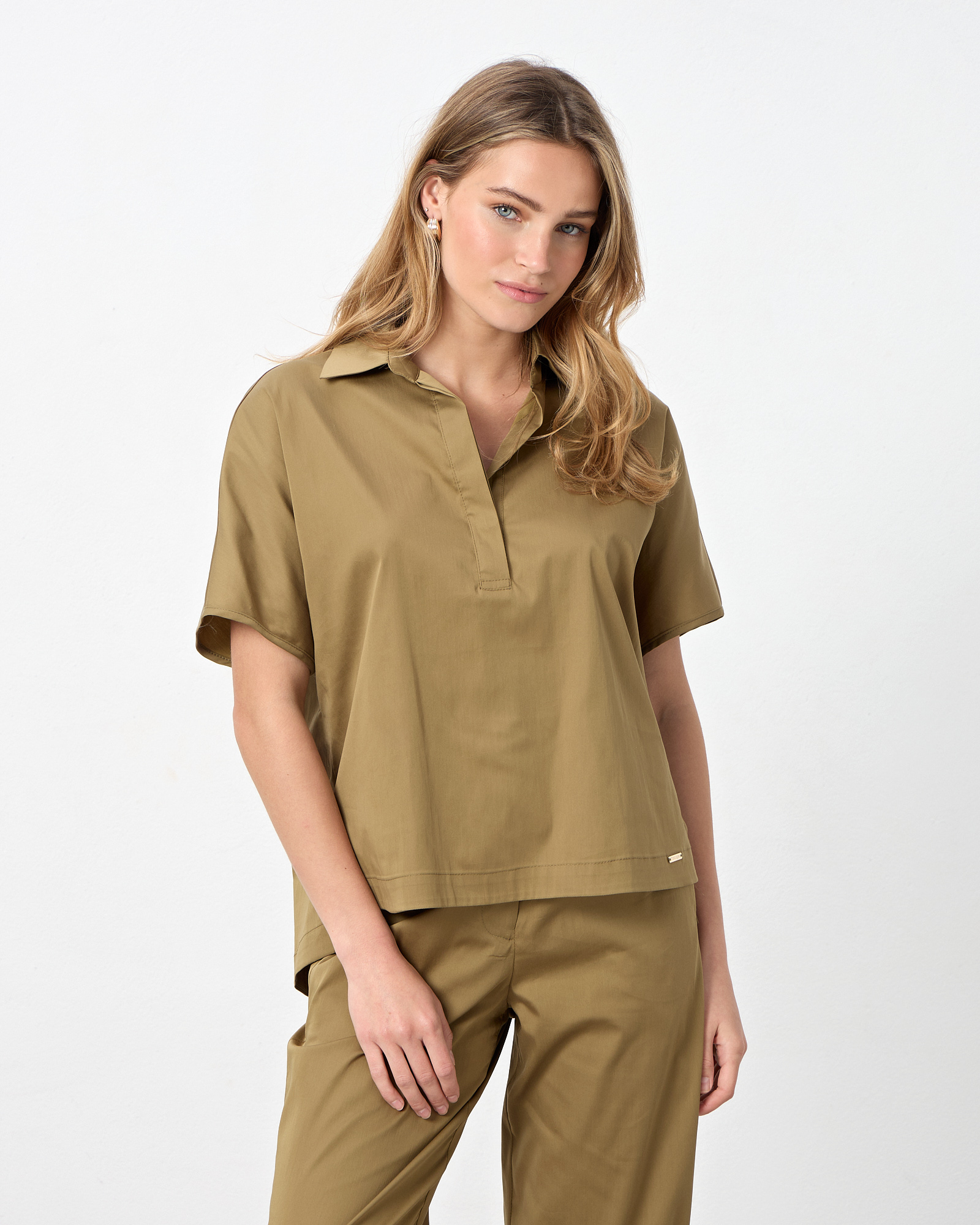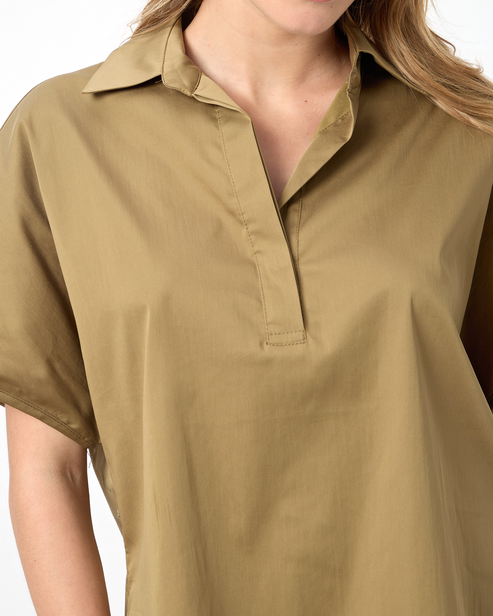 Μπλούζα ποπλίνα κοντομάνικη με γιακά, βαμβακερή σε κανονική γραμμή