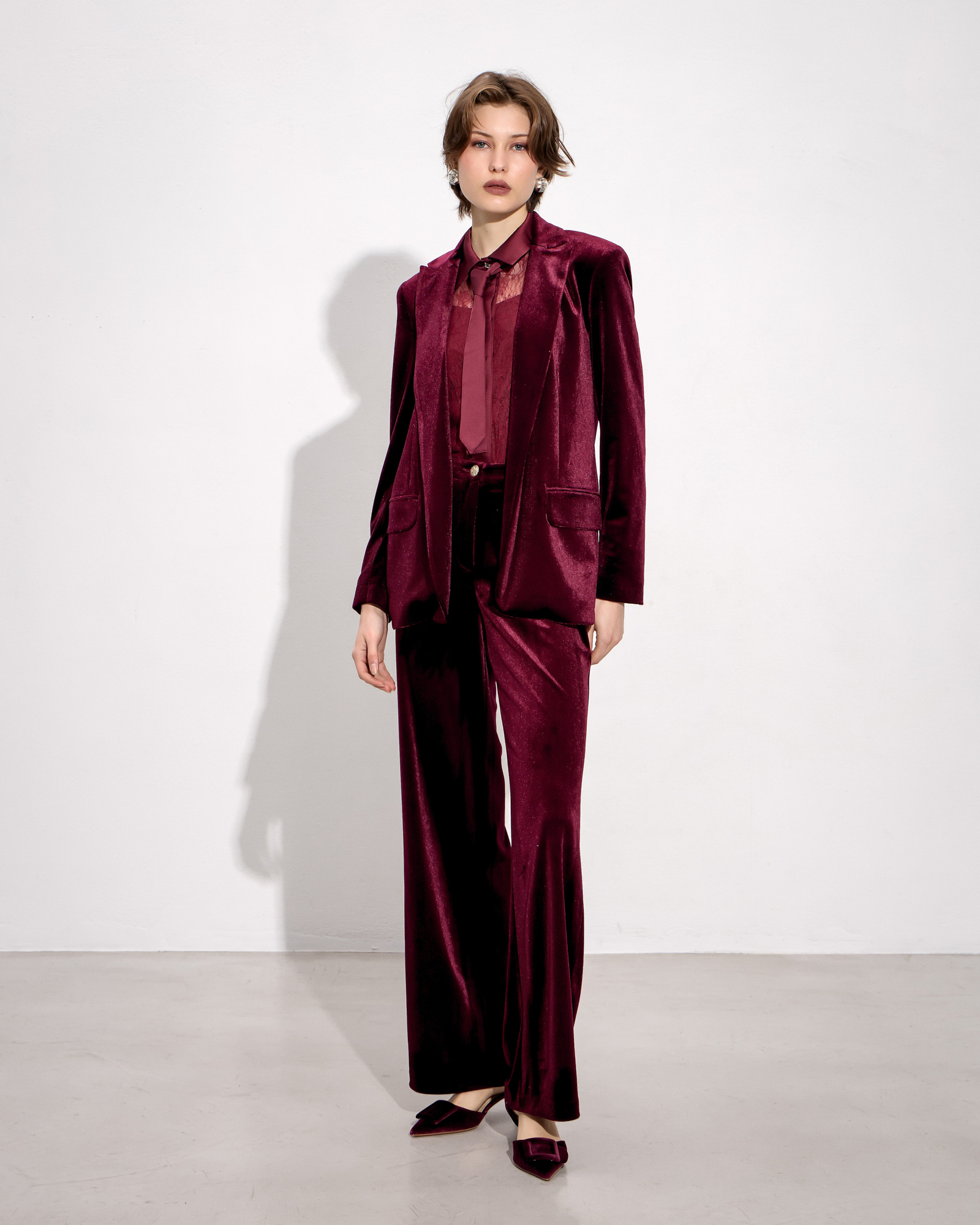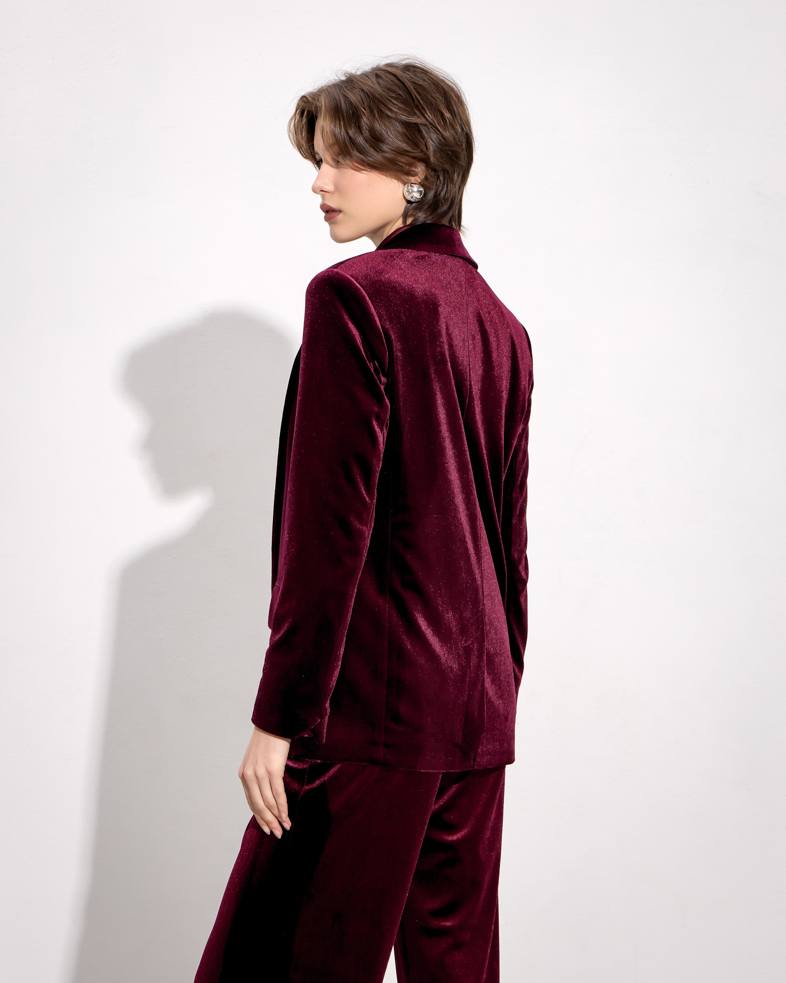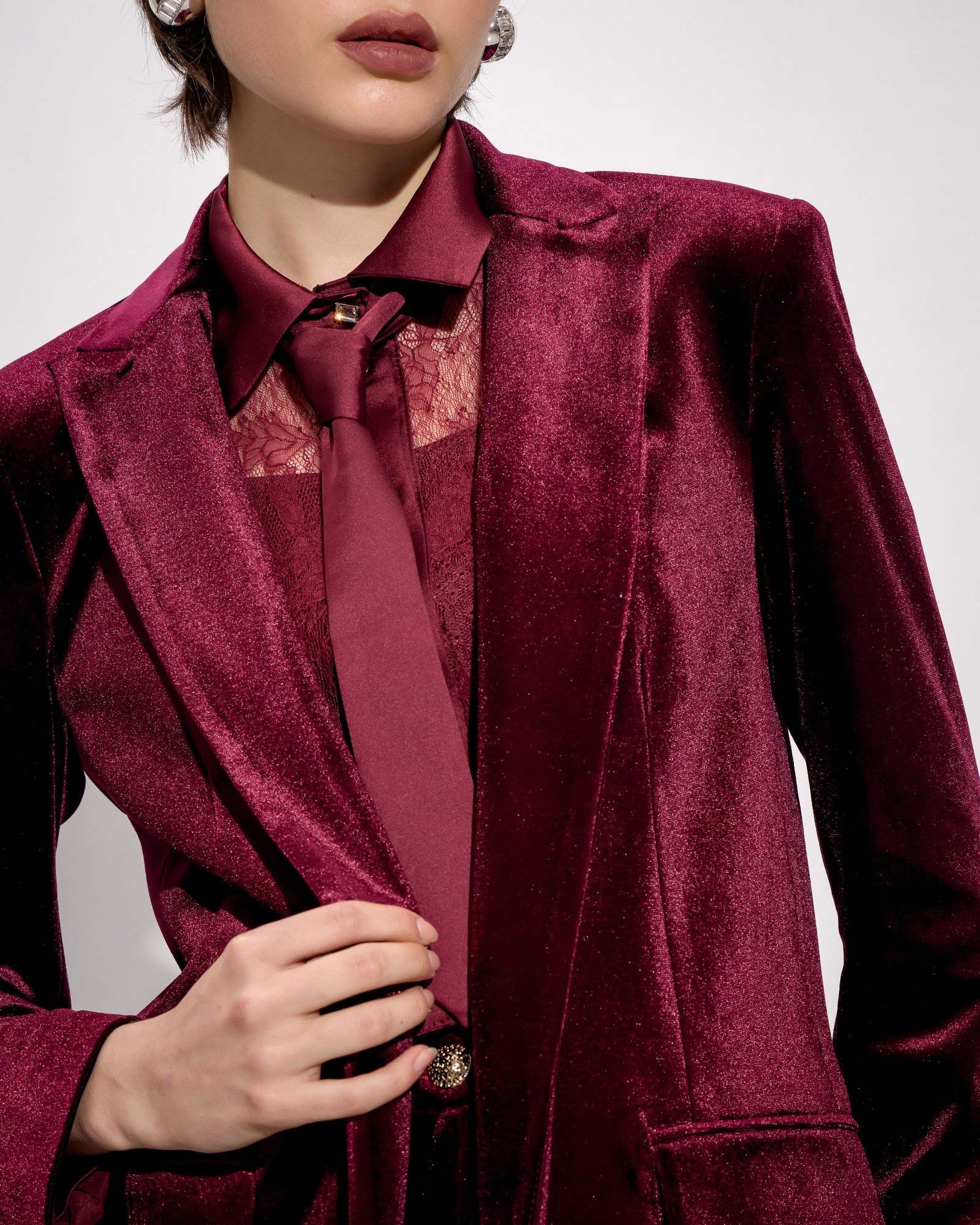 Σακάκι βελούδο με γιακά, μακρύ μανίκι με βάτες, τσέπες με καπάκι στο μπροστινό μέρος, εσωτερική φόδρα, σε κανονική εφαρμογή