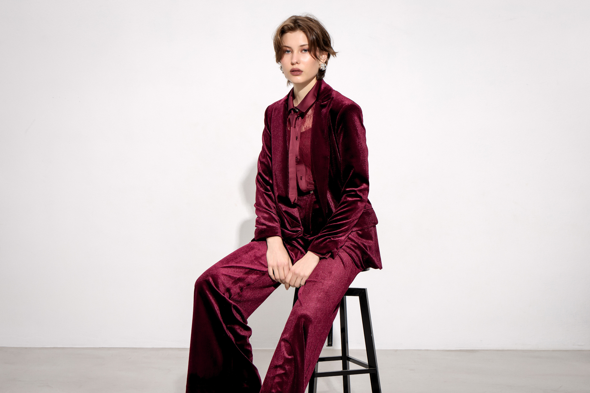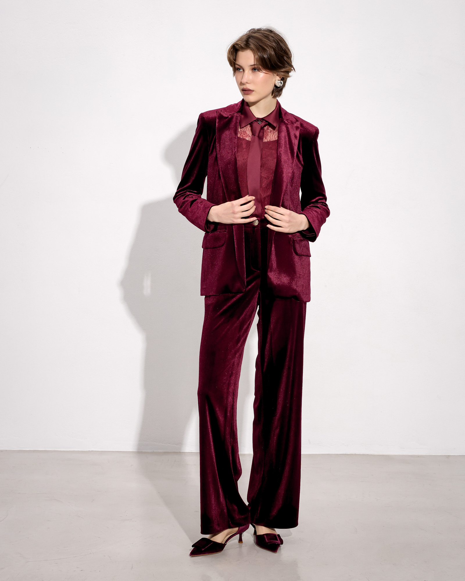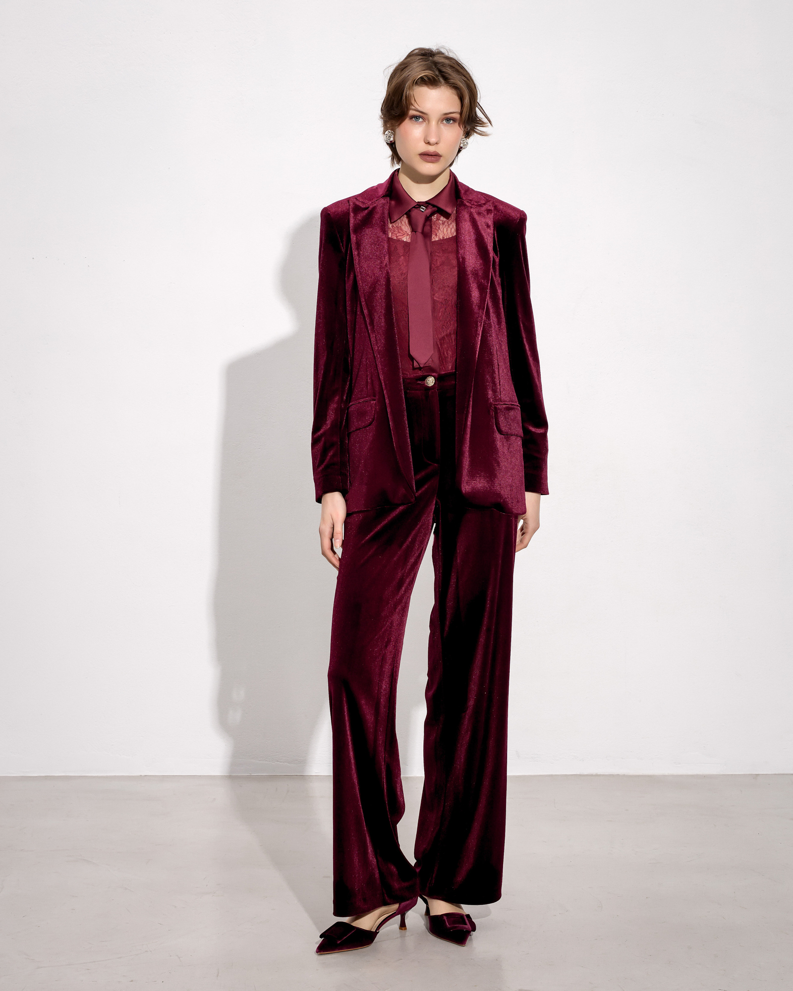 Σακάκι βελούδο με γιακά, μακρύ μανίκι με βάτες, τσέπες με καπάκι στο μπροστινό μέρος, εσωτερική φόδρα, σε κανονική εφαρμογή
