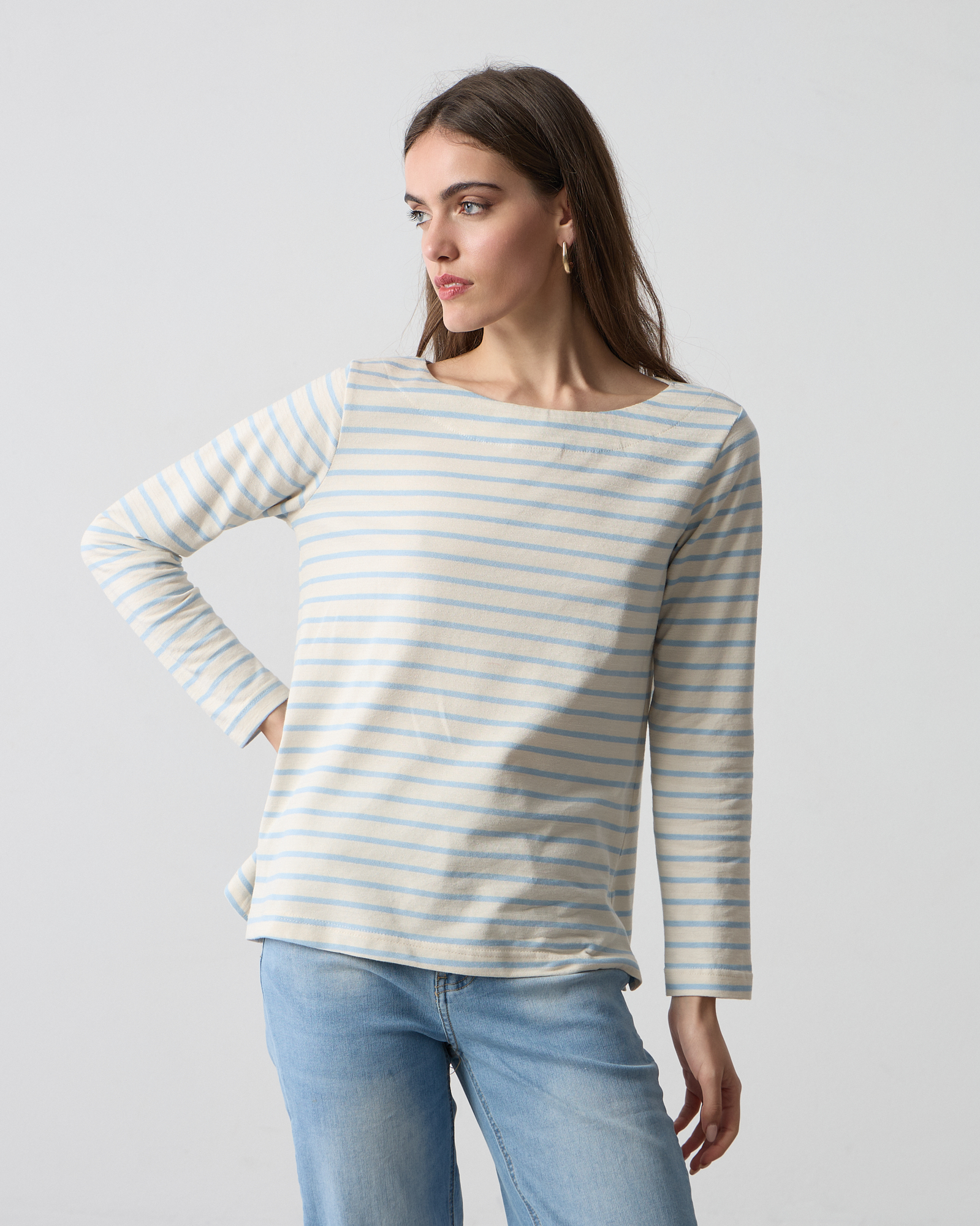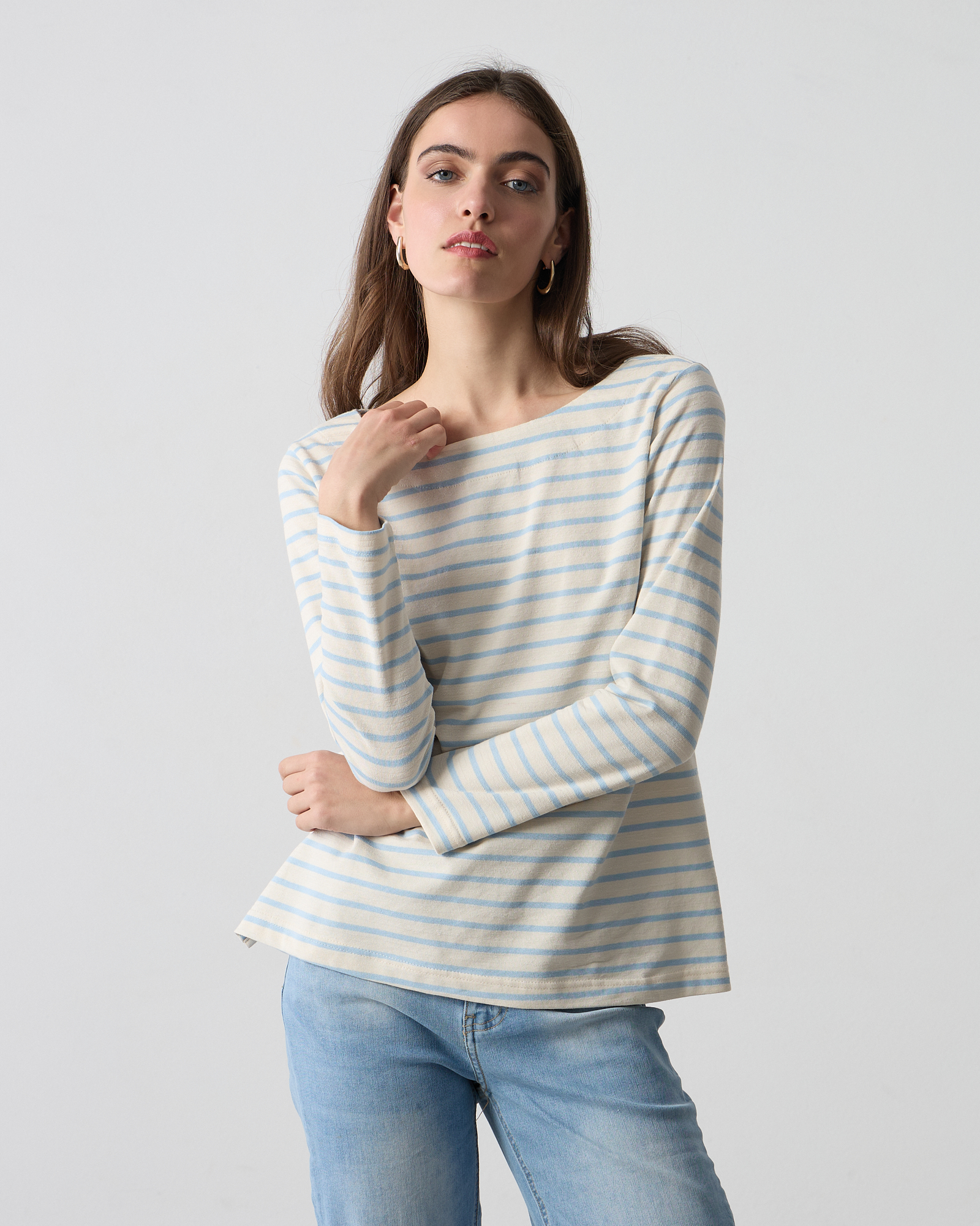 Μπλούζα ριγέ με μακριά μανίκια, στρογγυλή λαιμόκοψη βαμβακερό, κανονική εφαρμογή