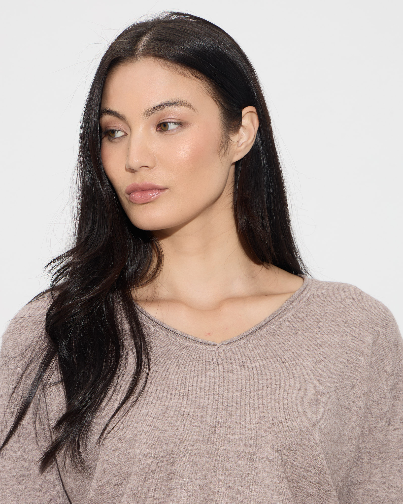 Μπλούζα με μακριά μανίκια, με V λαιμόκοψη, σε άνετη γραμμή