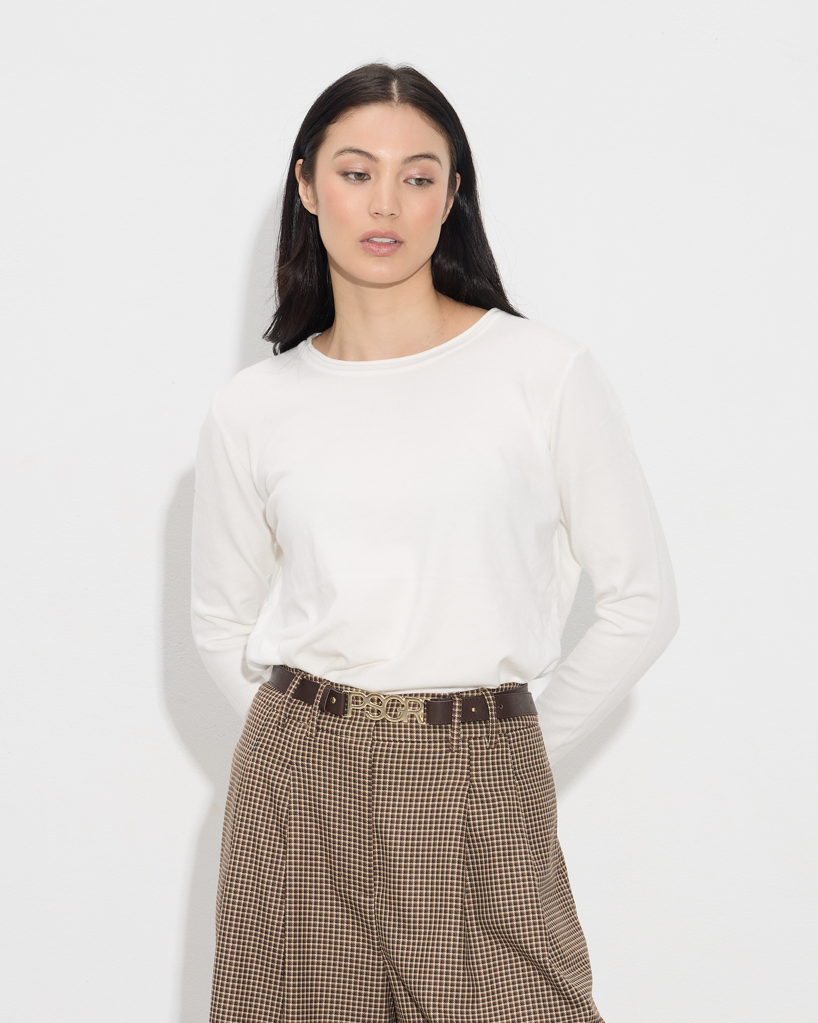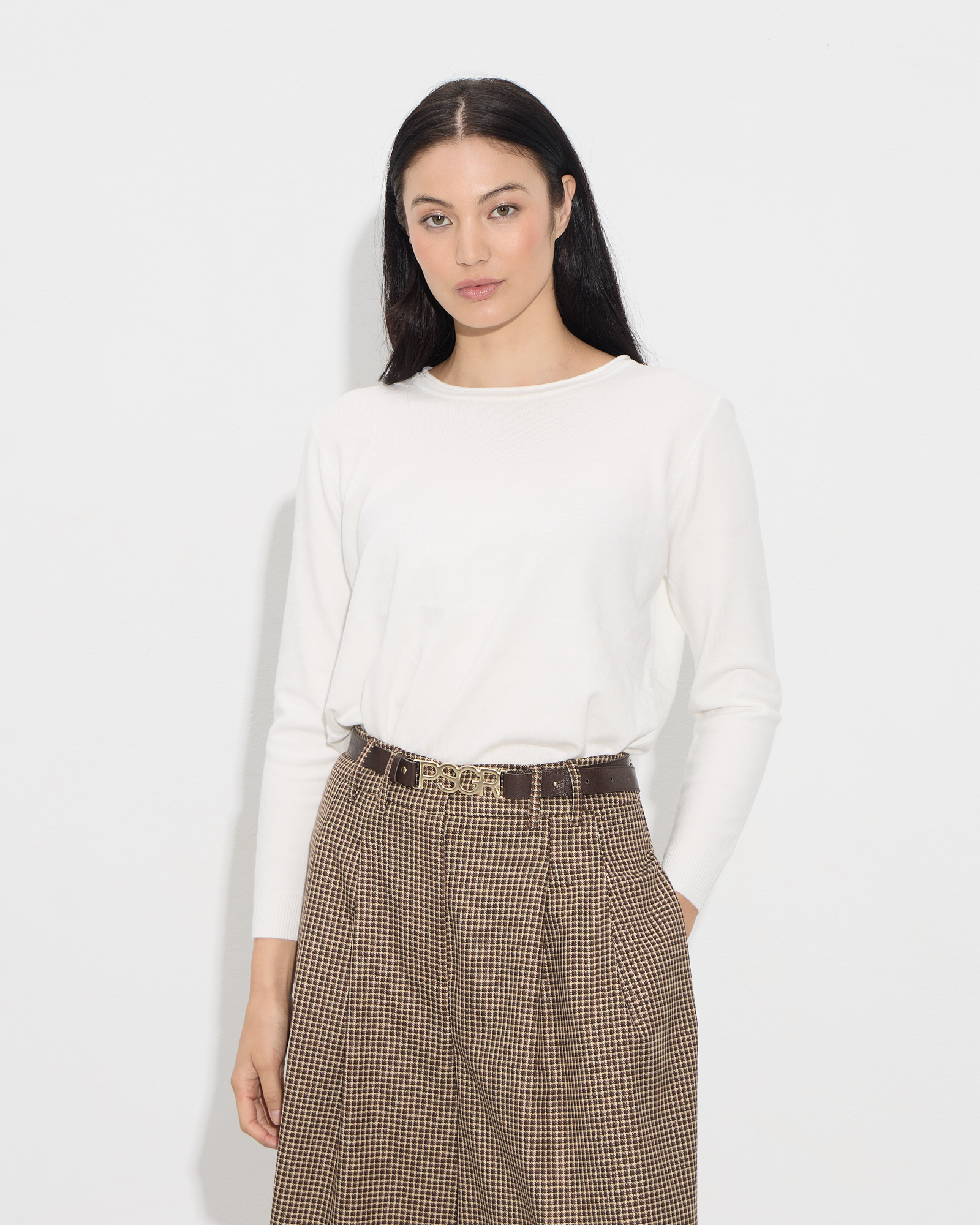 Μπλούζα με μακριά μανίκια, στρογγυλή λαιμόκοψη, σε άνετη γραμμή