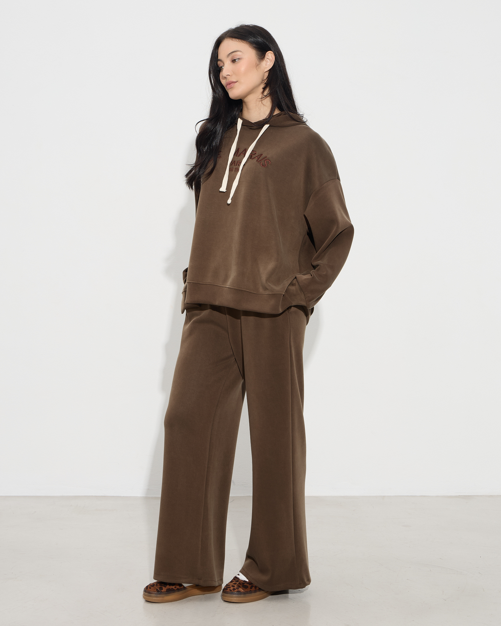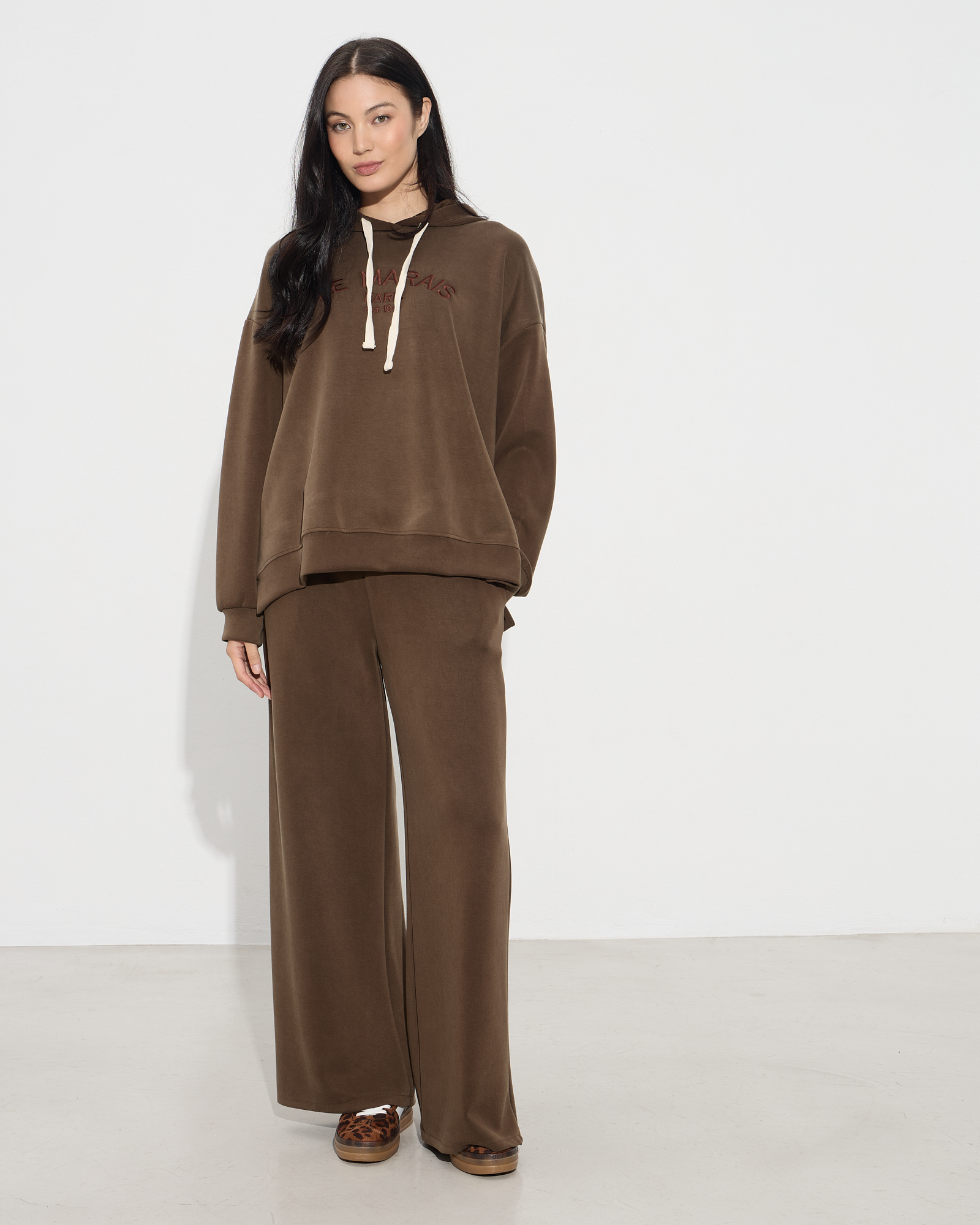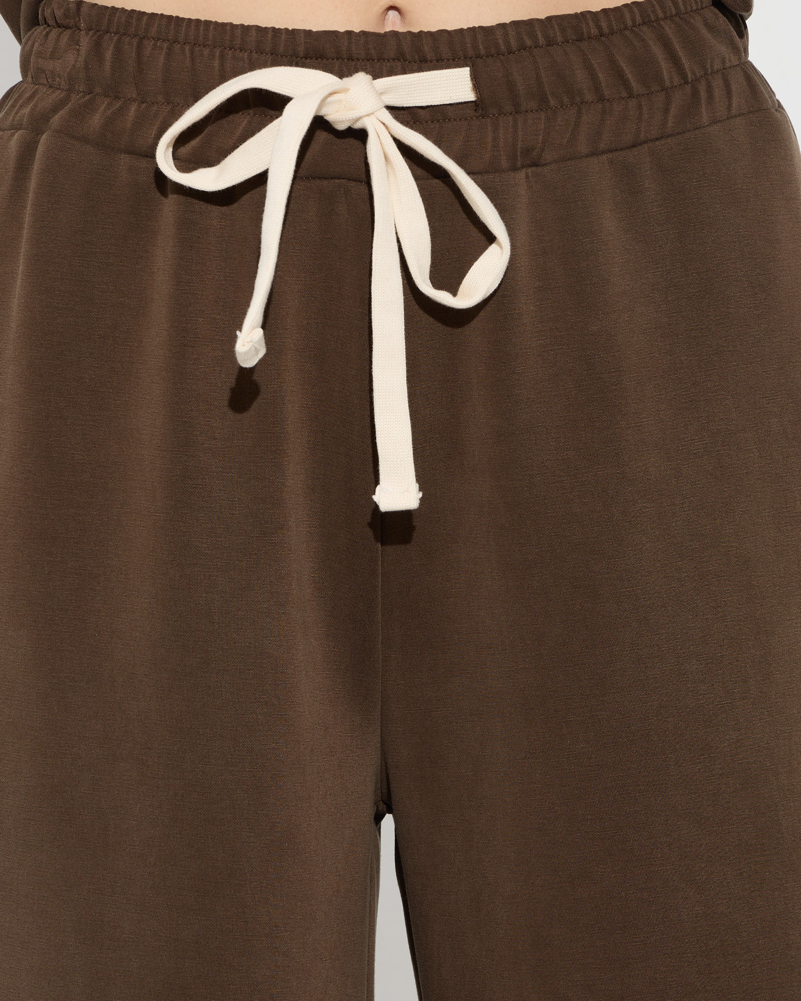 Παντελόνι ψηλόμεσο με λάστιχο στη μέση, με ρυθμιζόμενο κορδόνι, τσέπες στο πλάι, σε μαλακό και ελαστικό πανί,σε άνετη γραμμή
