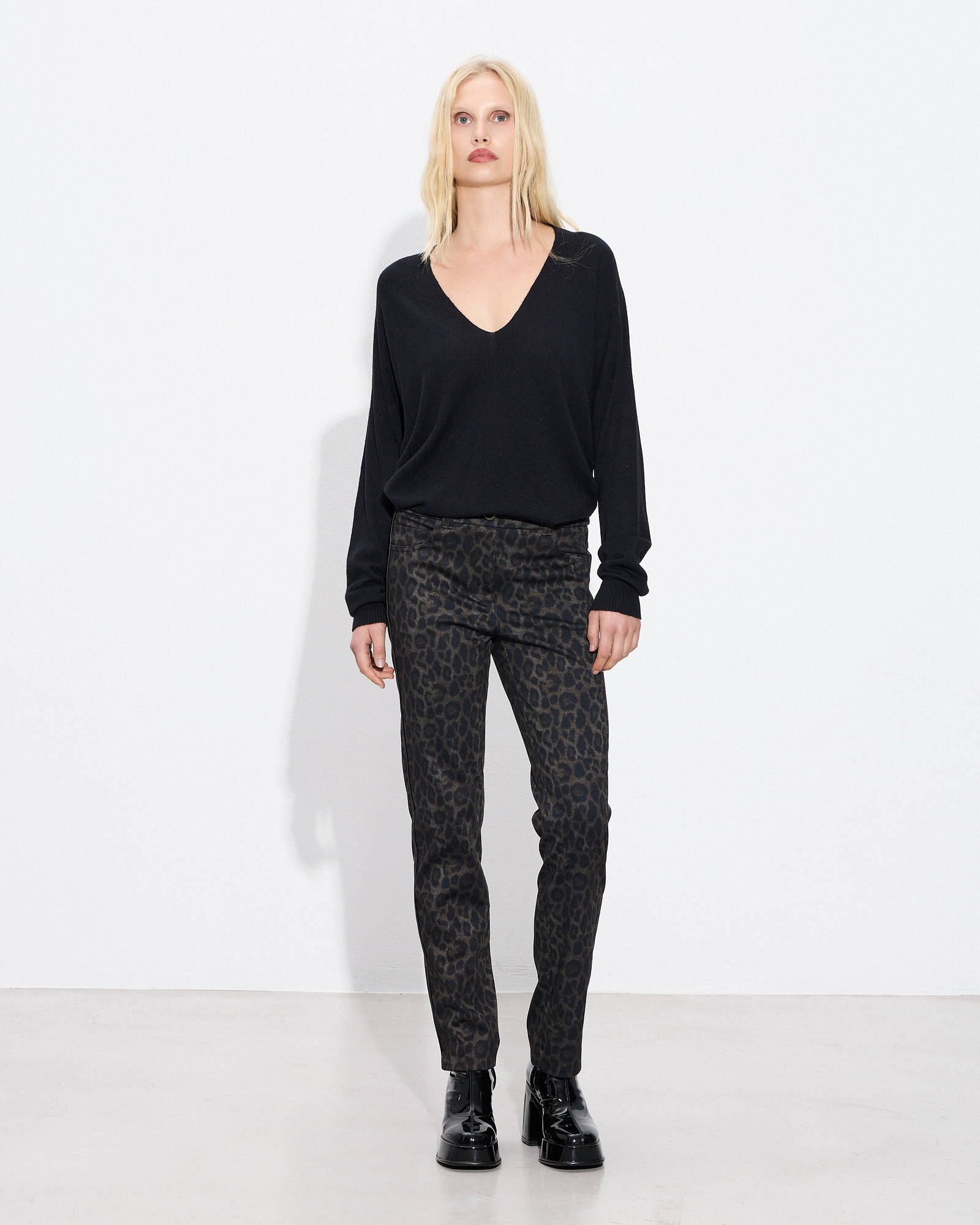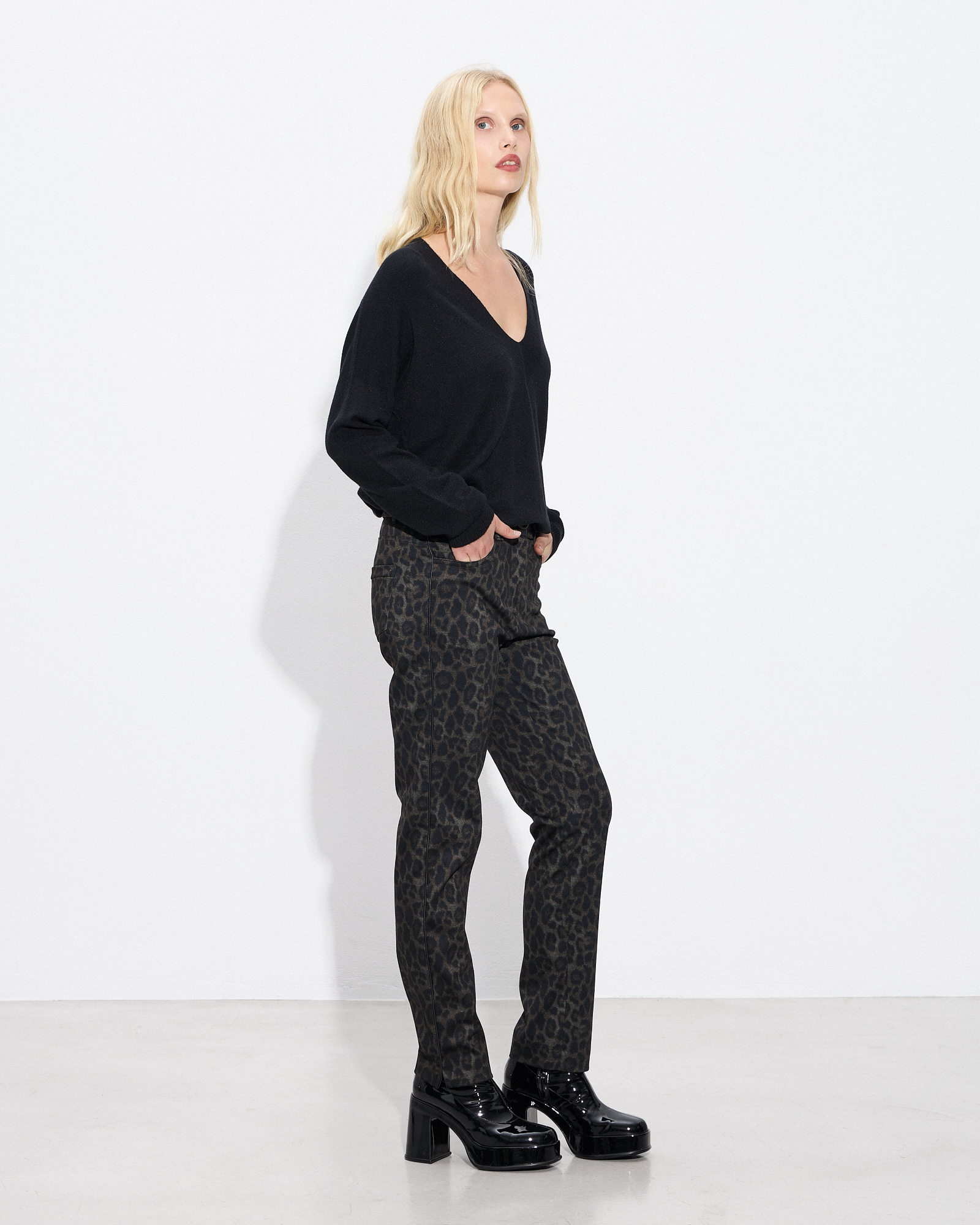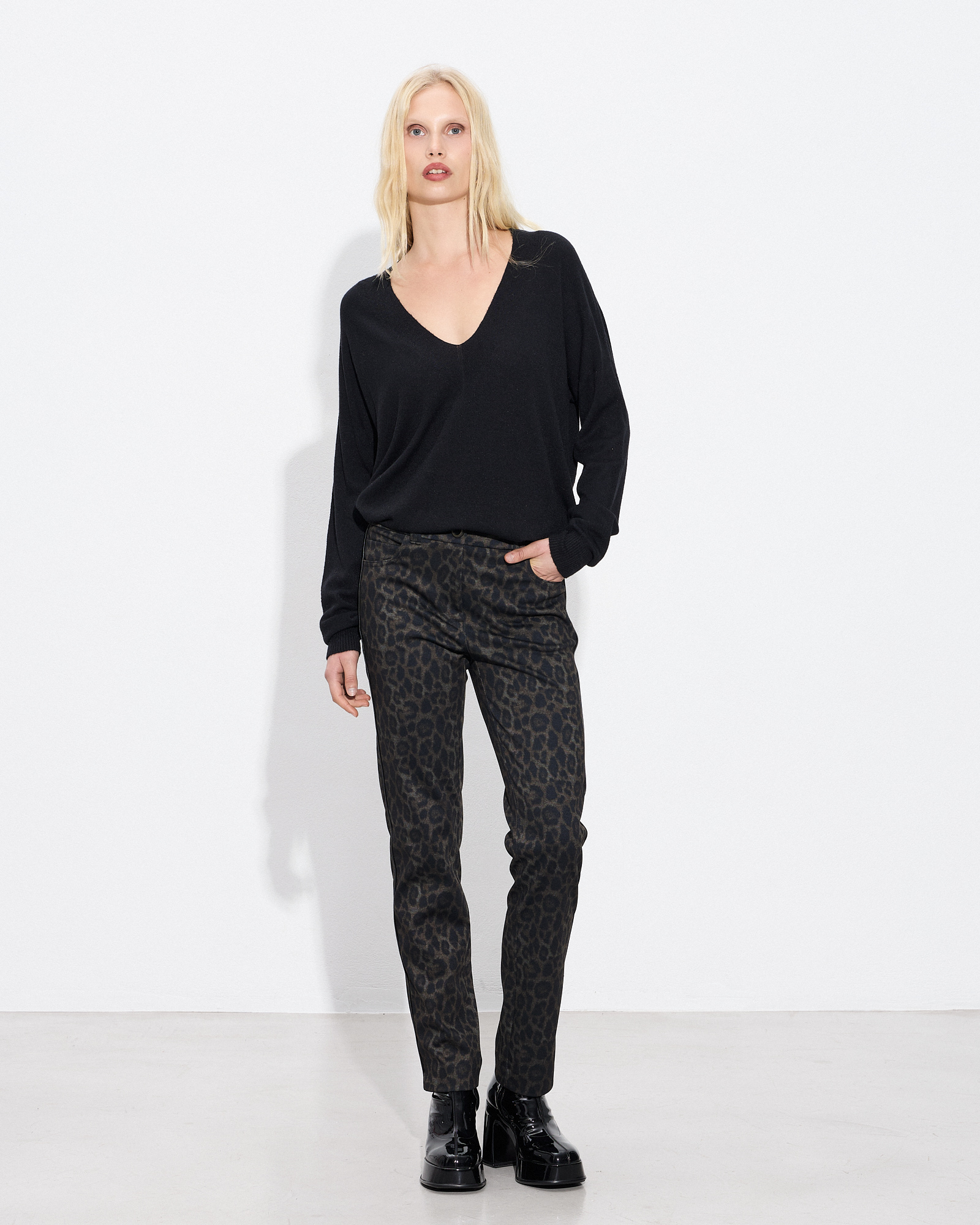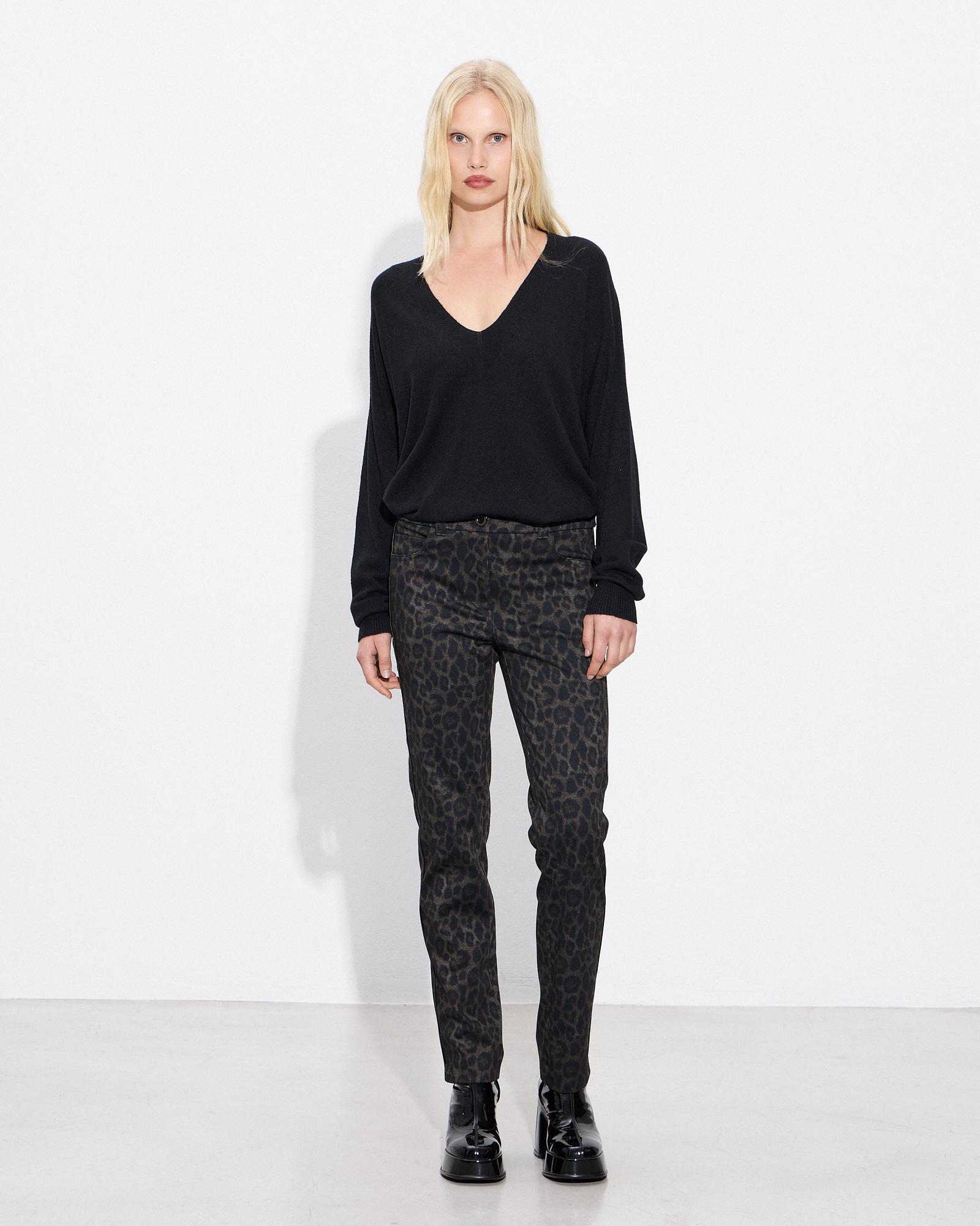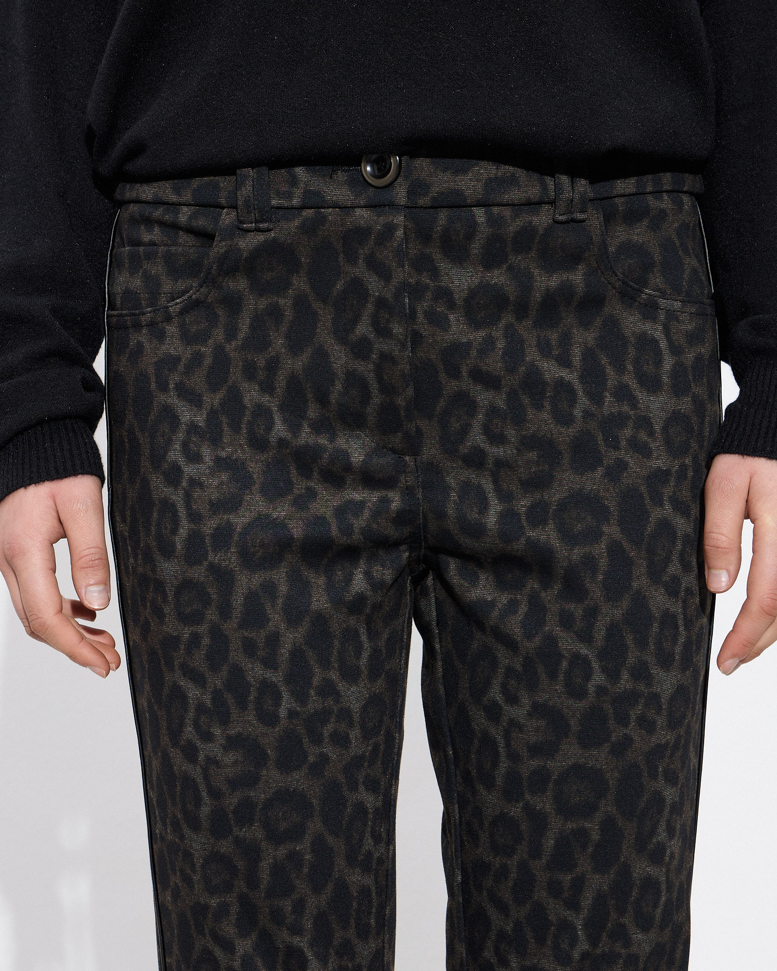 Παντελόνι animal print, κλείσιμο μπροστά με φερμουάρ και κουμπί, πλαiϊνές τσέπες, μαλακό ελαστικό ύφασμα σε κανονική γραμμή