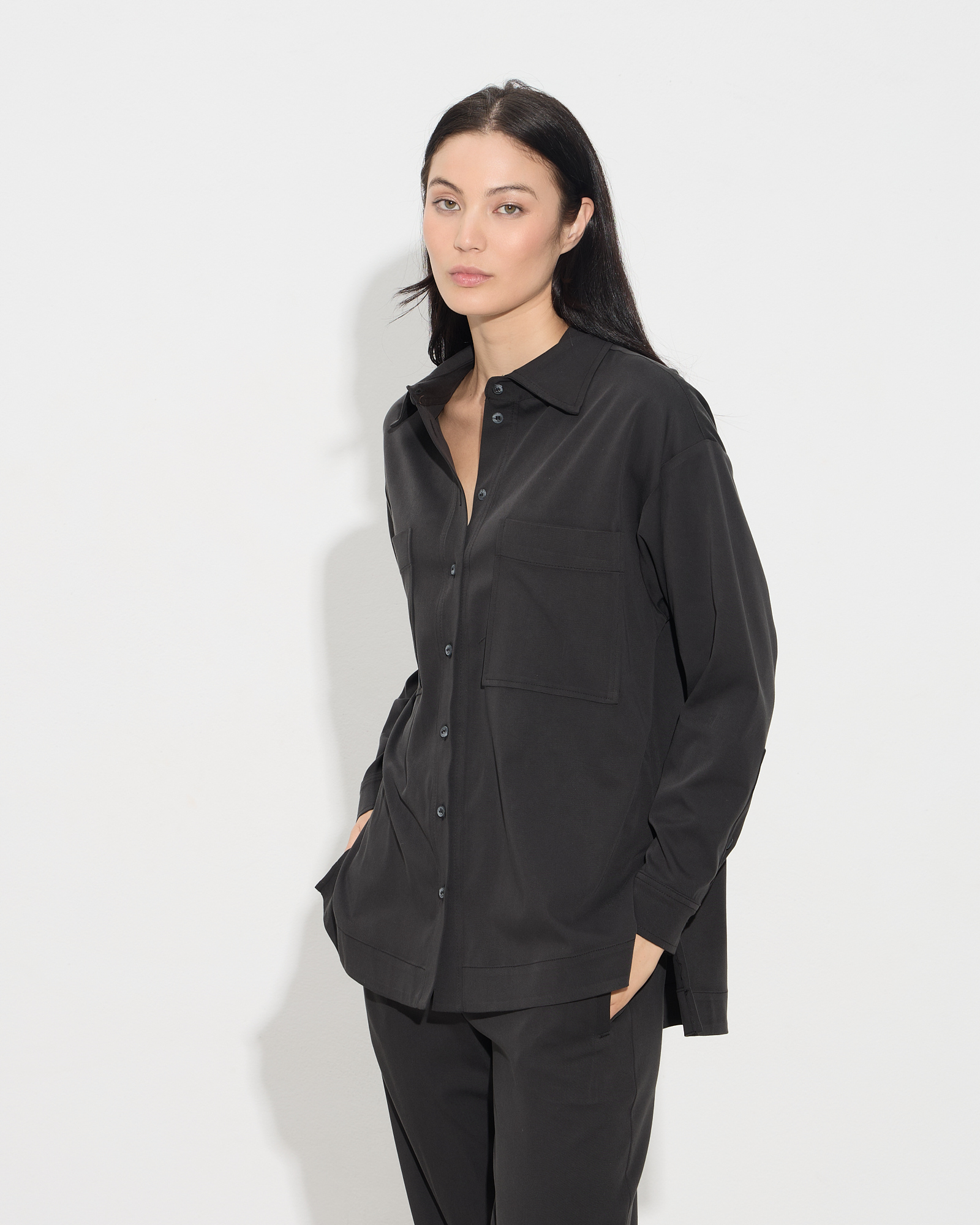 Πουκαμίσα oversized με γιακά, κλείσιμο με κουμπιά μπροστά, εξωτερικές τσέπες, μακρύ μανίκι με μανσέτα και κουμπιά, σε άνετη γραμμή