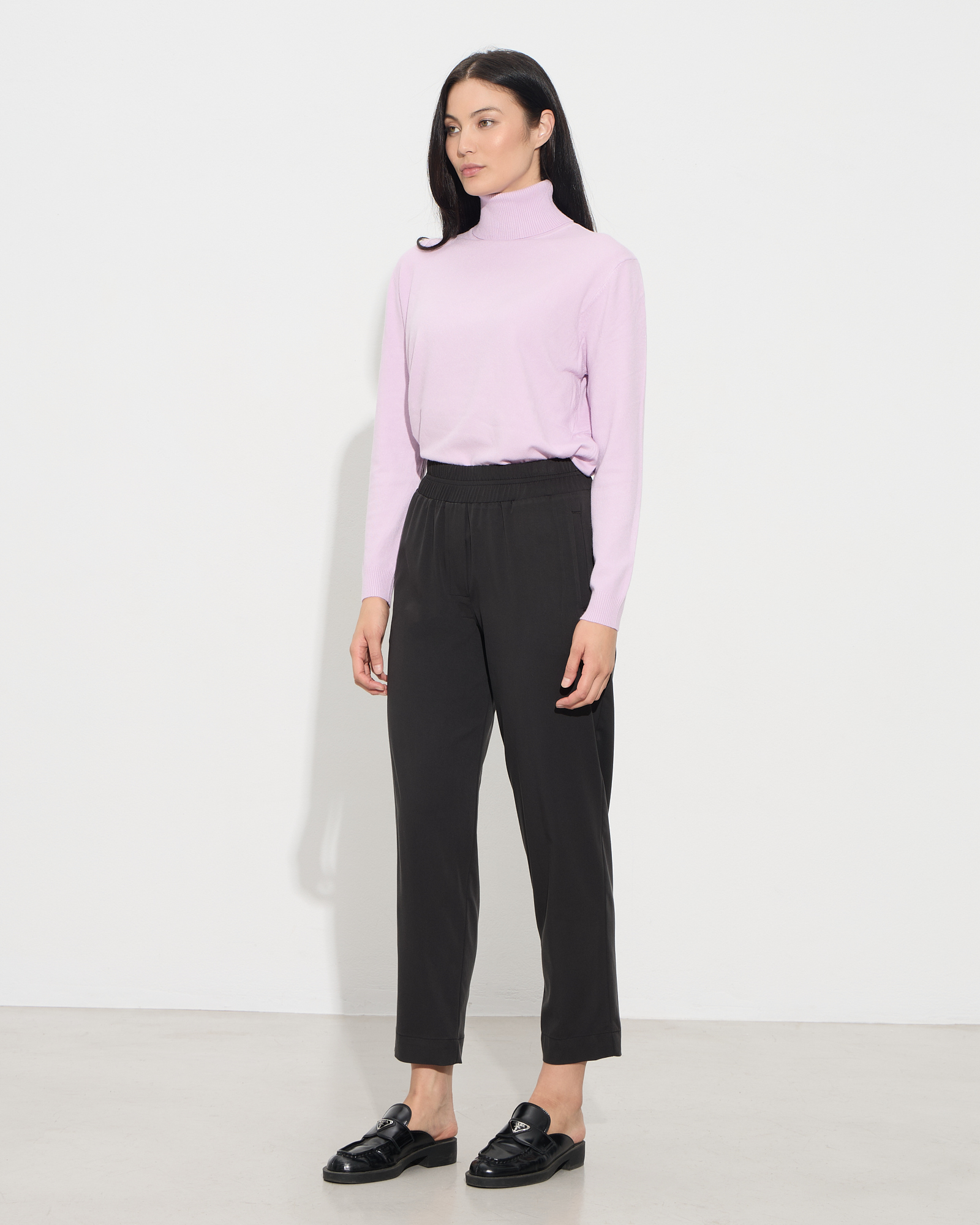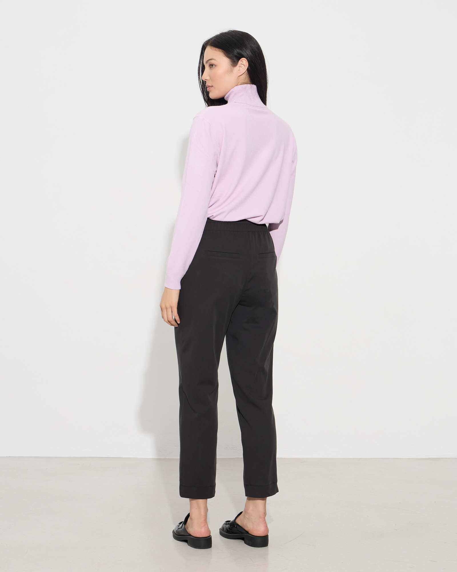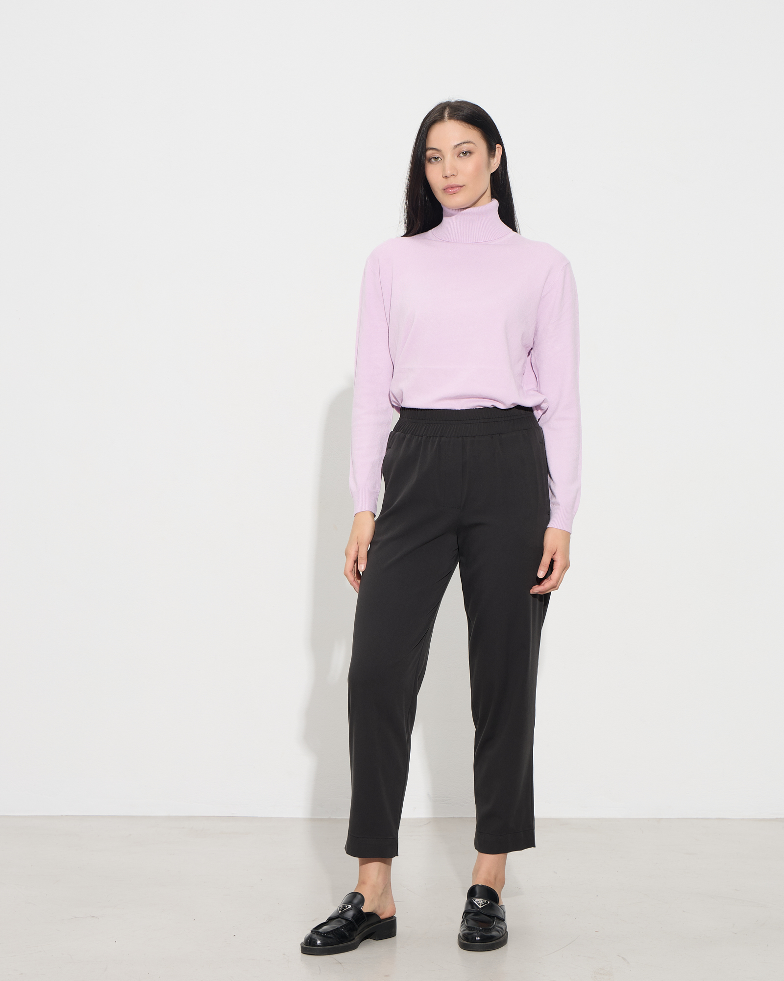 Παντελόνι ψηλόμεσο με λάστιχο στη μέση, μονόχρωμο με τσέπες στο πλάι, σε κανονική γραμμή