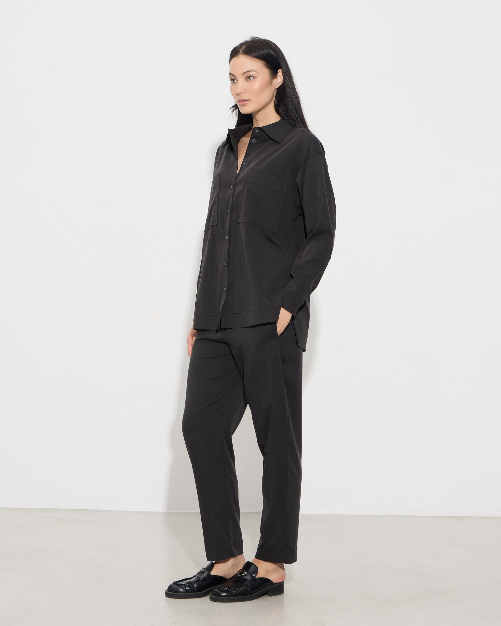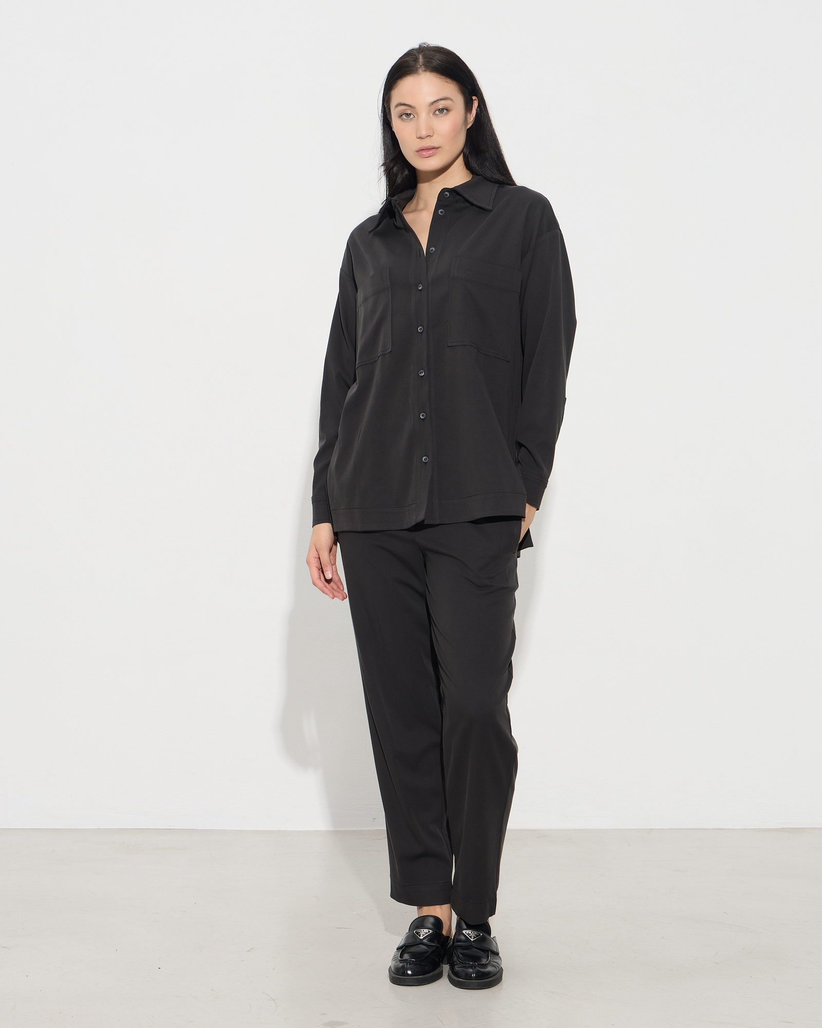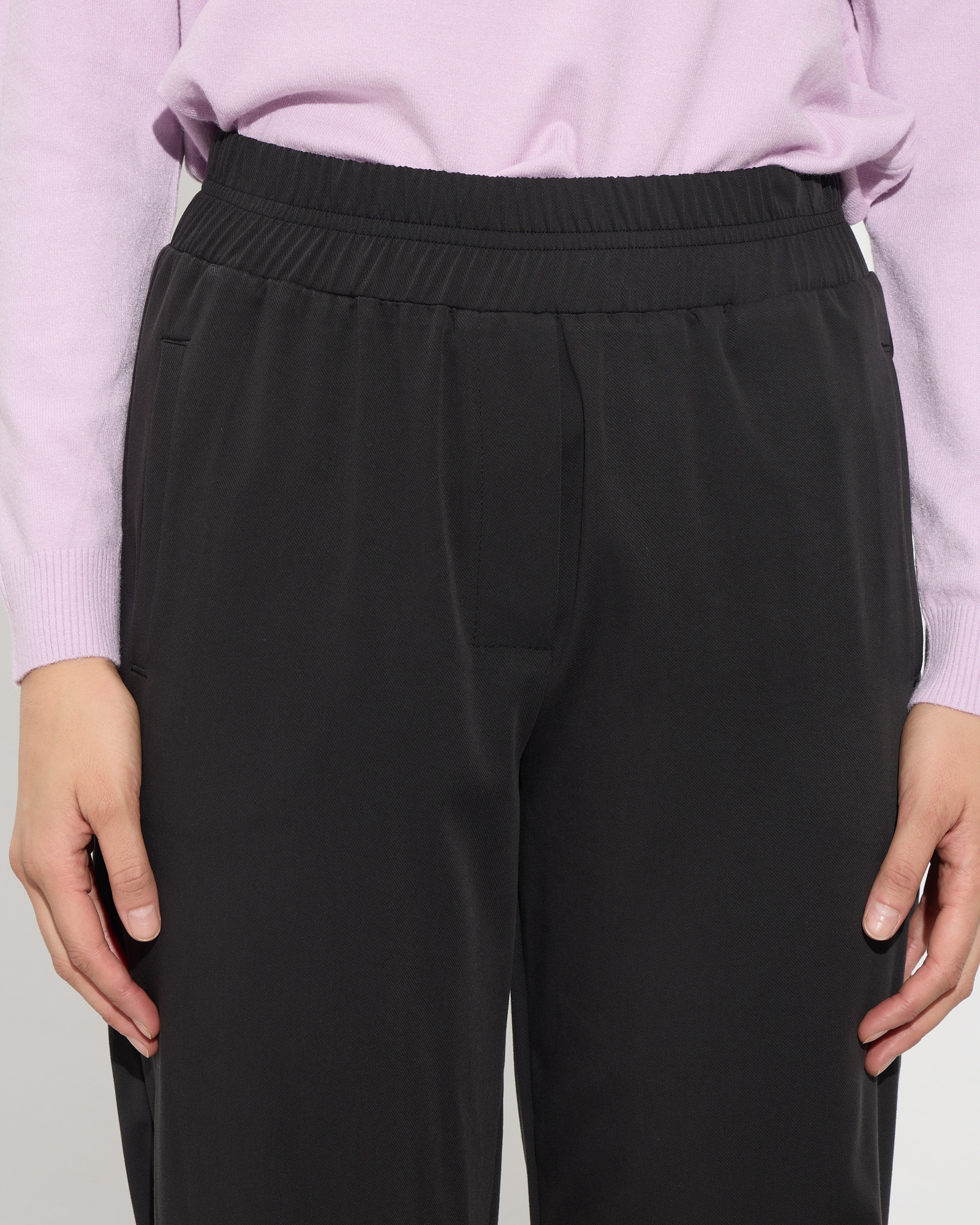 Παντελόνι ψηλόμεσο με λάστιχο στη μέση, μονόχρωμο με τσέπες στο πλάι, σε κανονική γραμμή