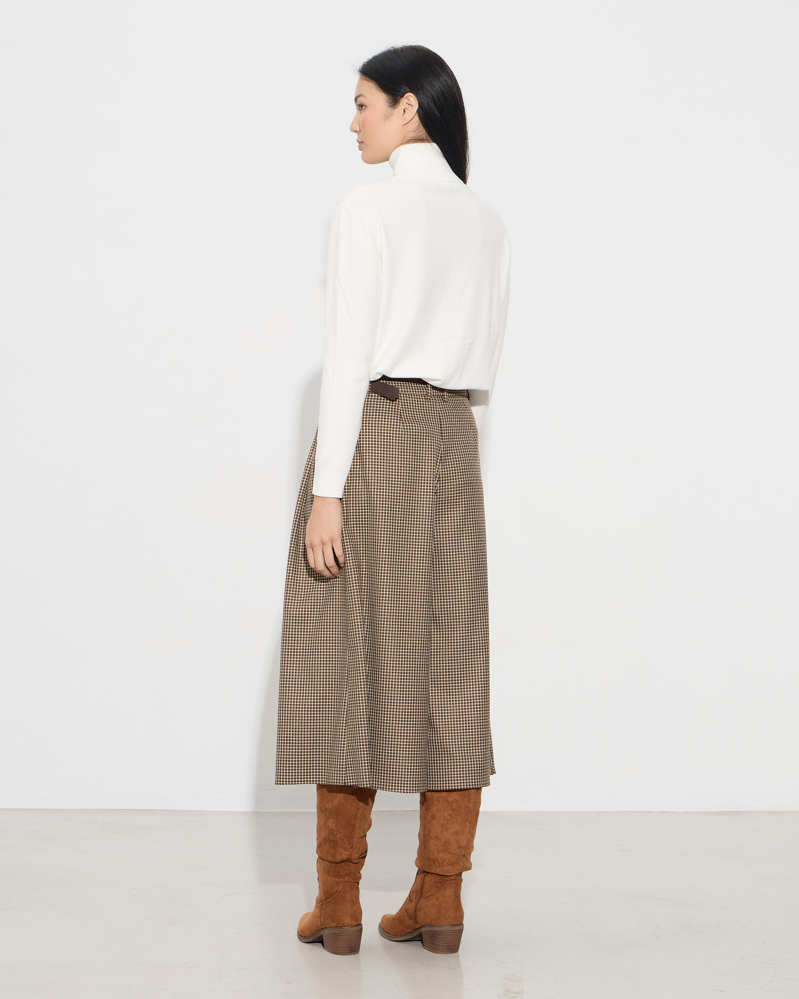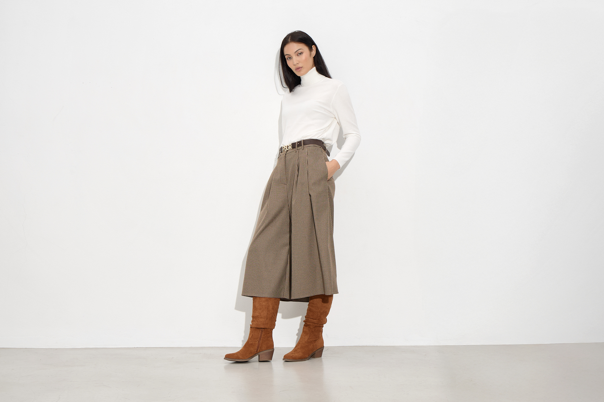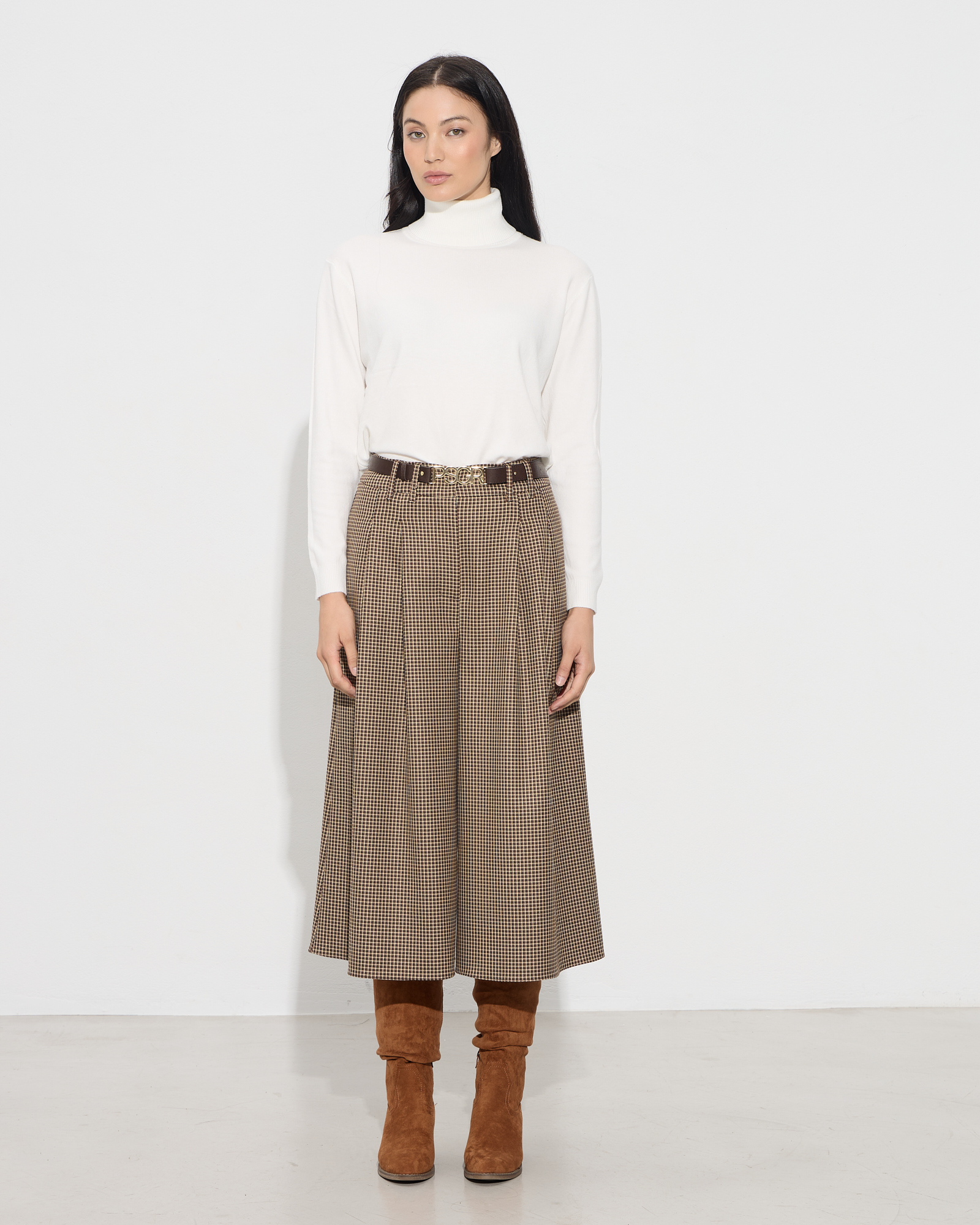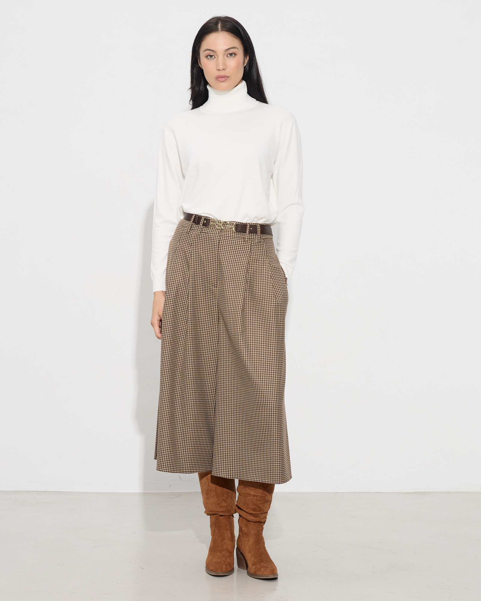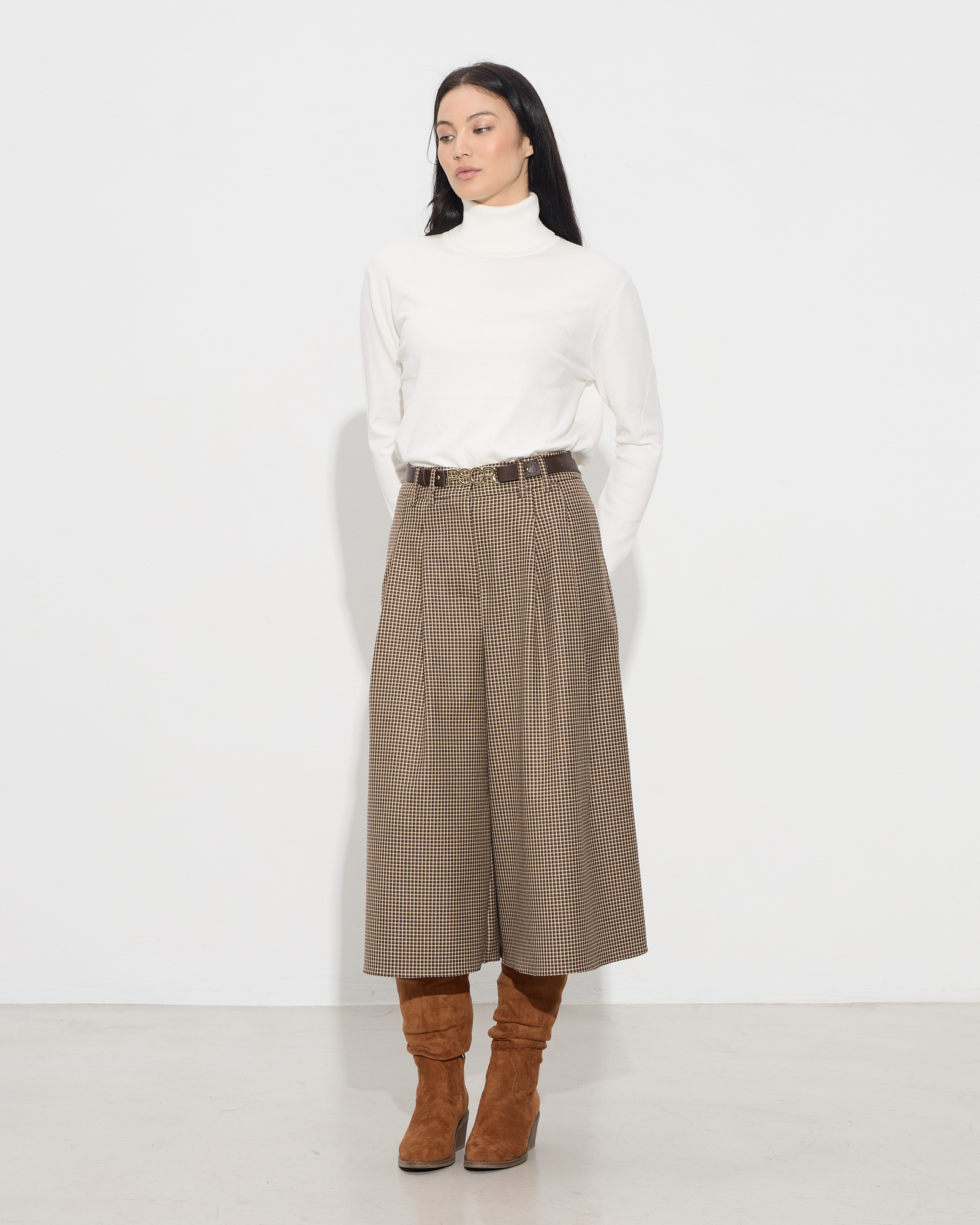 Ζιπ κιλότ καρό ψηλόμεση με ζώνη στη μέση, κλείσιμο με φερμουάρ και κουμπί, πλαϊνές τσέπες, σε κανονική γραμμή